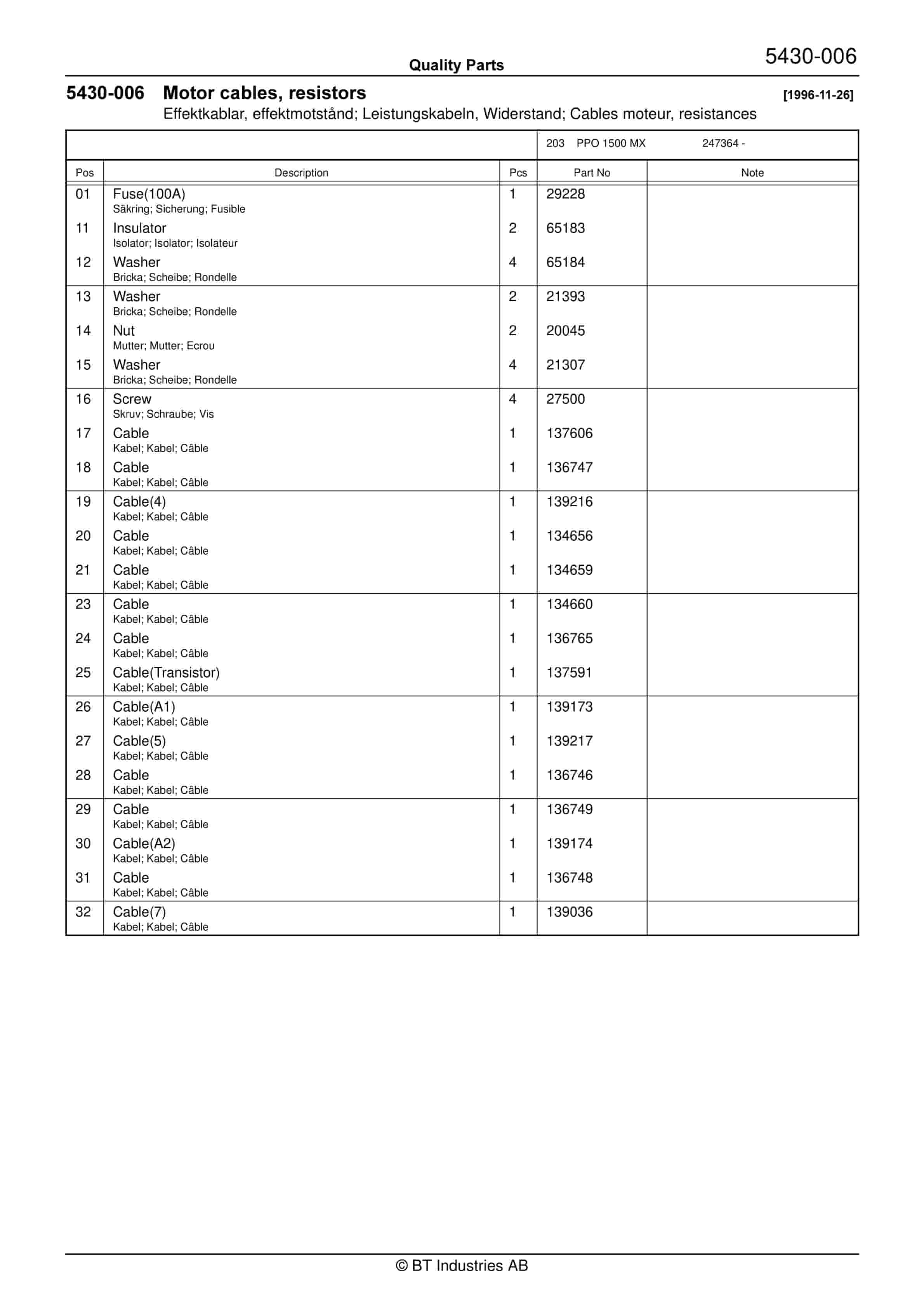 BT PPO 1500 MX Quality Parts 169014