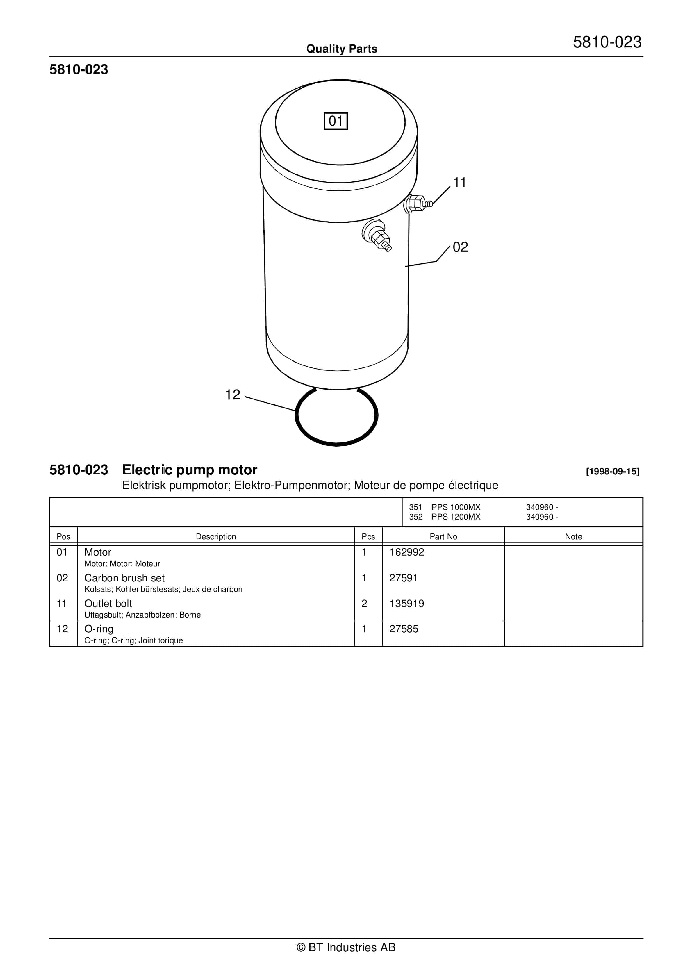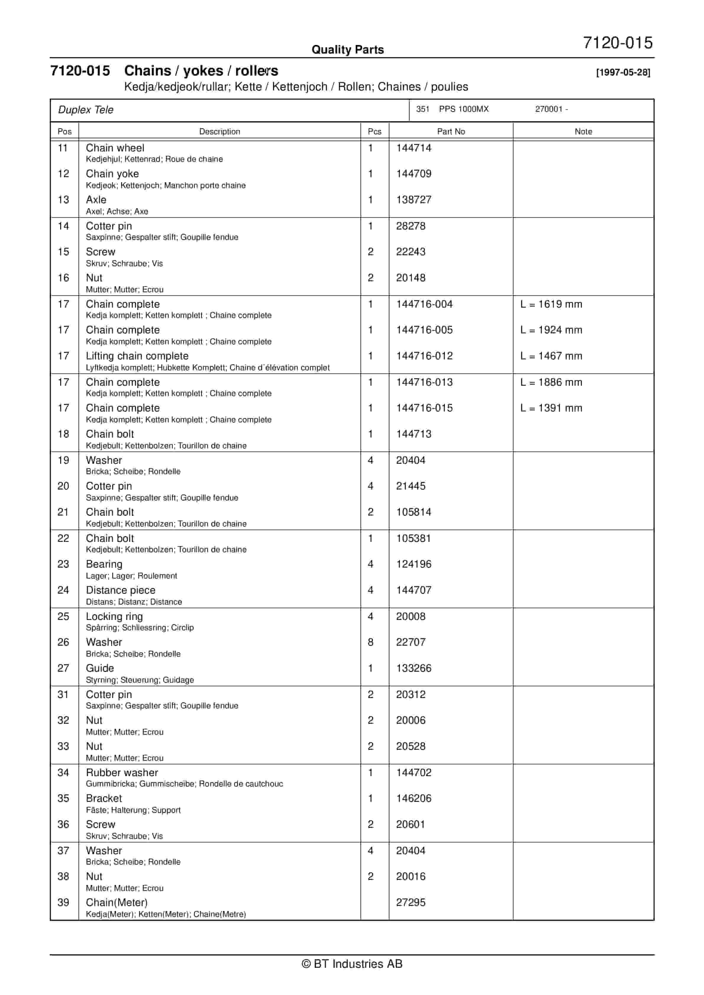 BT PPS 1000MX, PPS 1200MX Quality Parts 174367