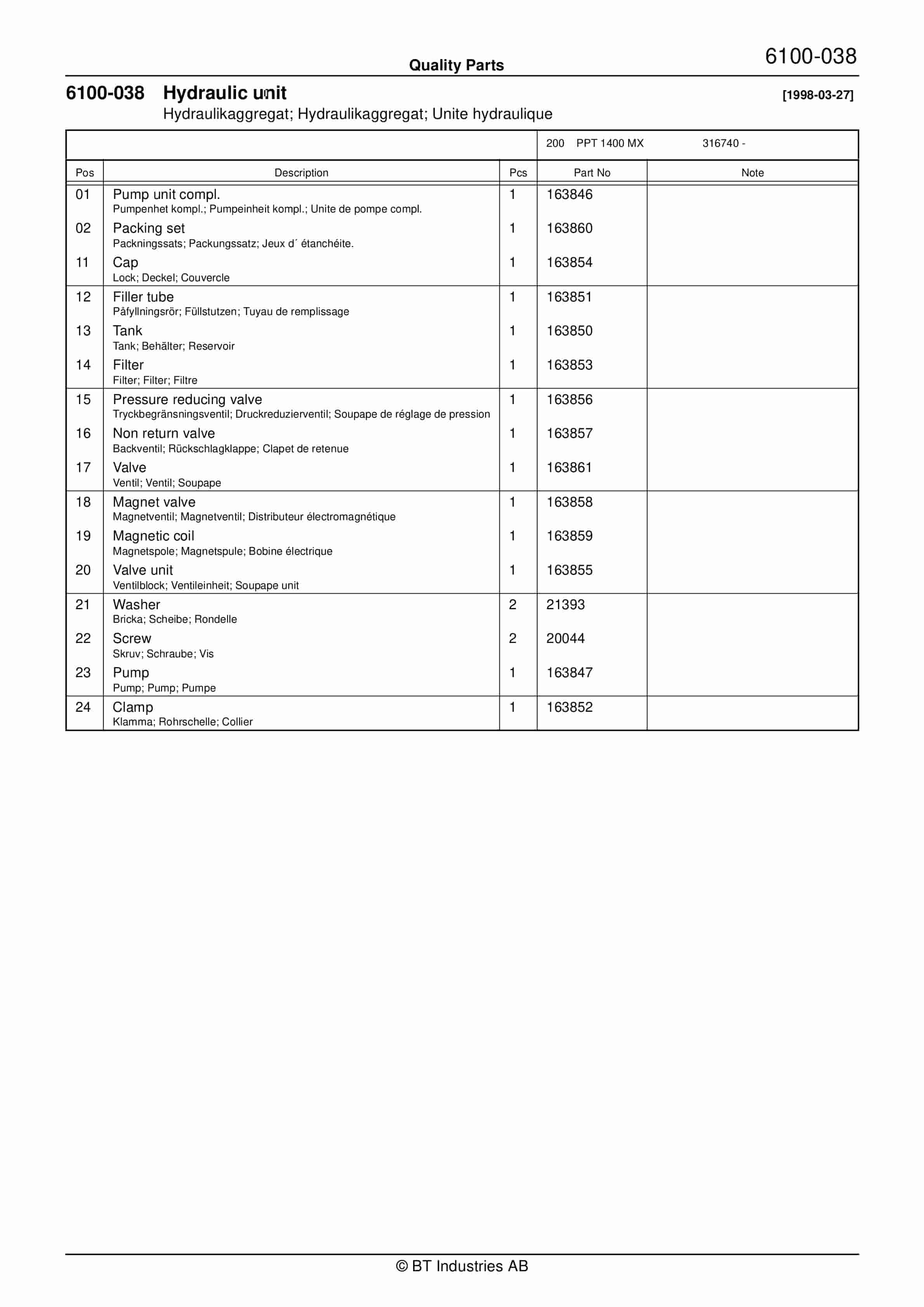 BT BTL2000, BTL2000I, BTL2000K, BTL2000O, BTL2000Q, BTL2000X, BTL2000U, BTL2000QX, Serial 11 Quality Parts 170417