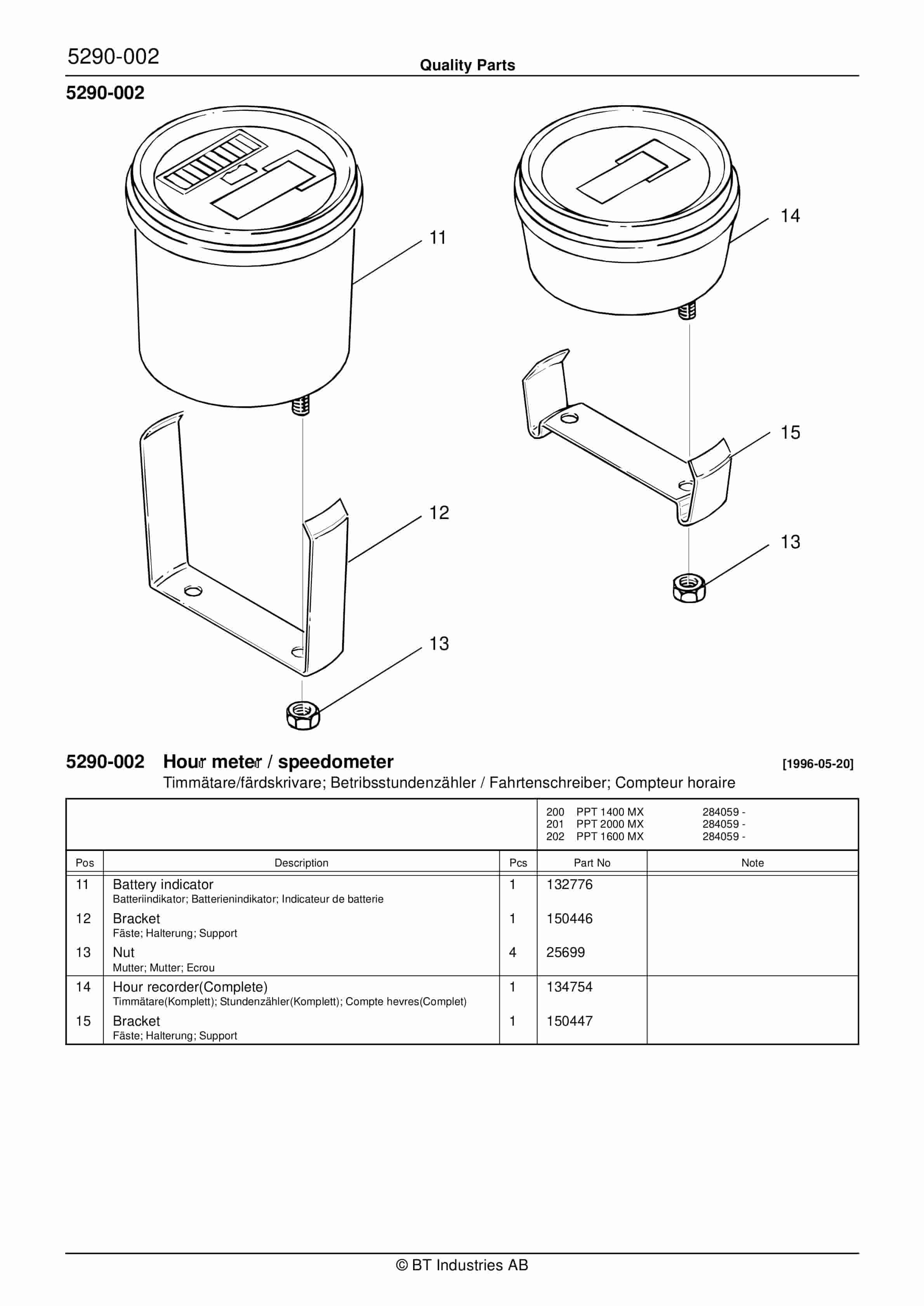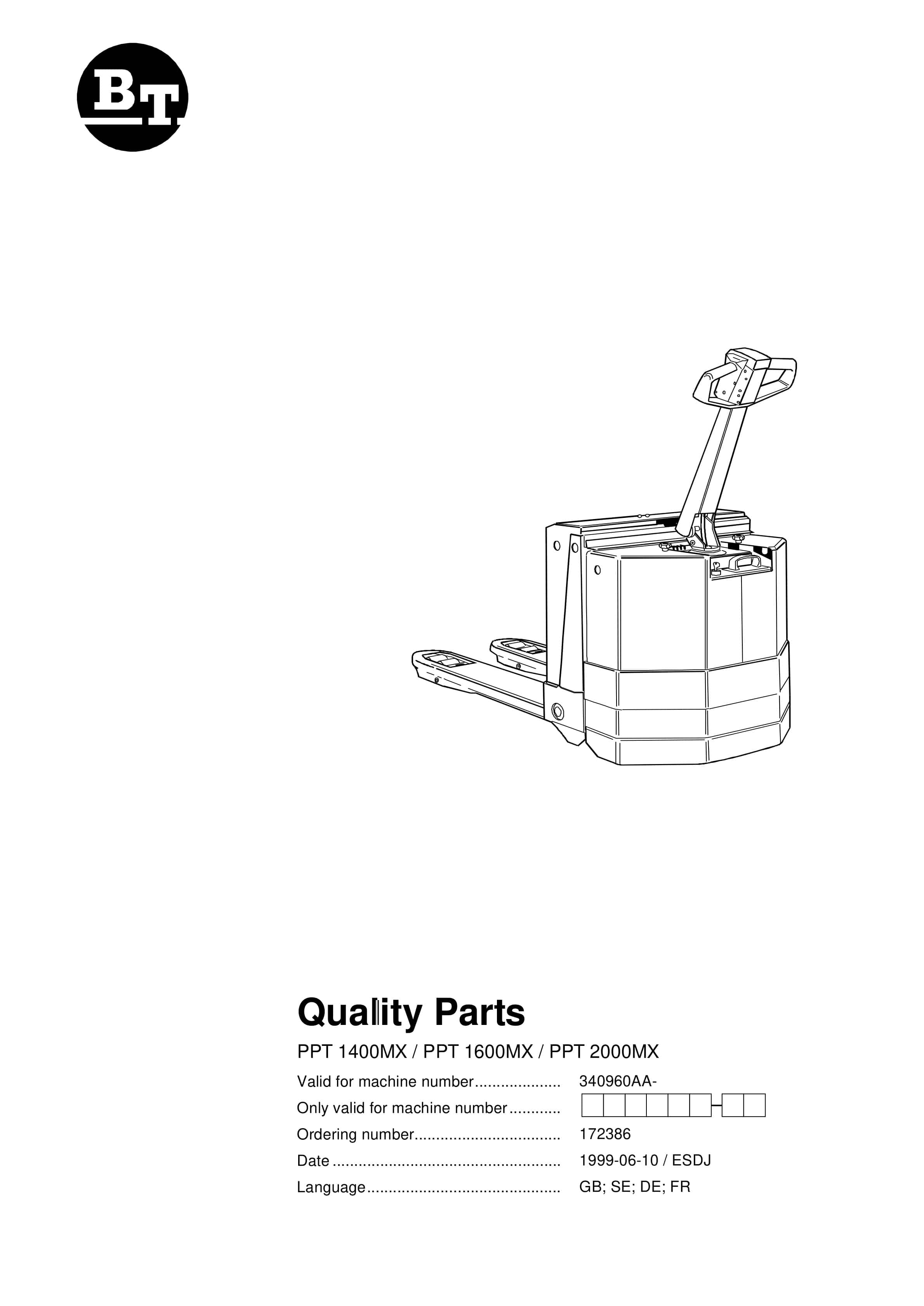 BT PPT 1400MX, PPT 1600MX, PPT 2000MX Quality Parts 172386