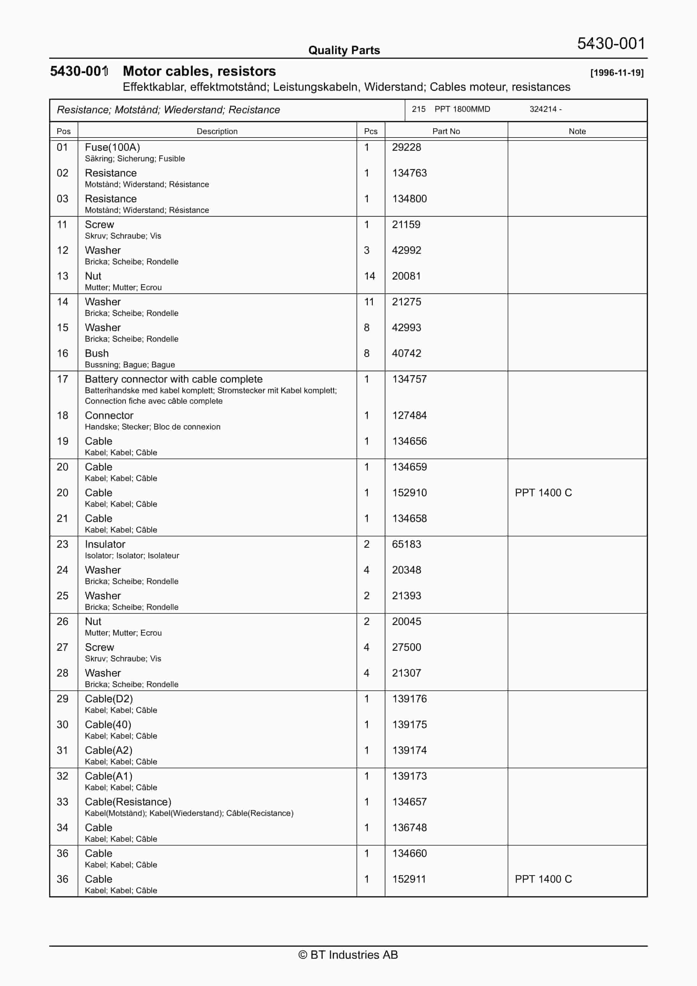 BT CARGO CBE 3.0 Spare Parts Catalog 0350127R1-0
