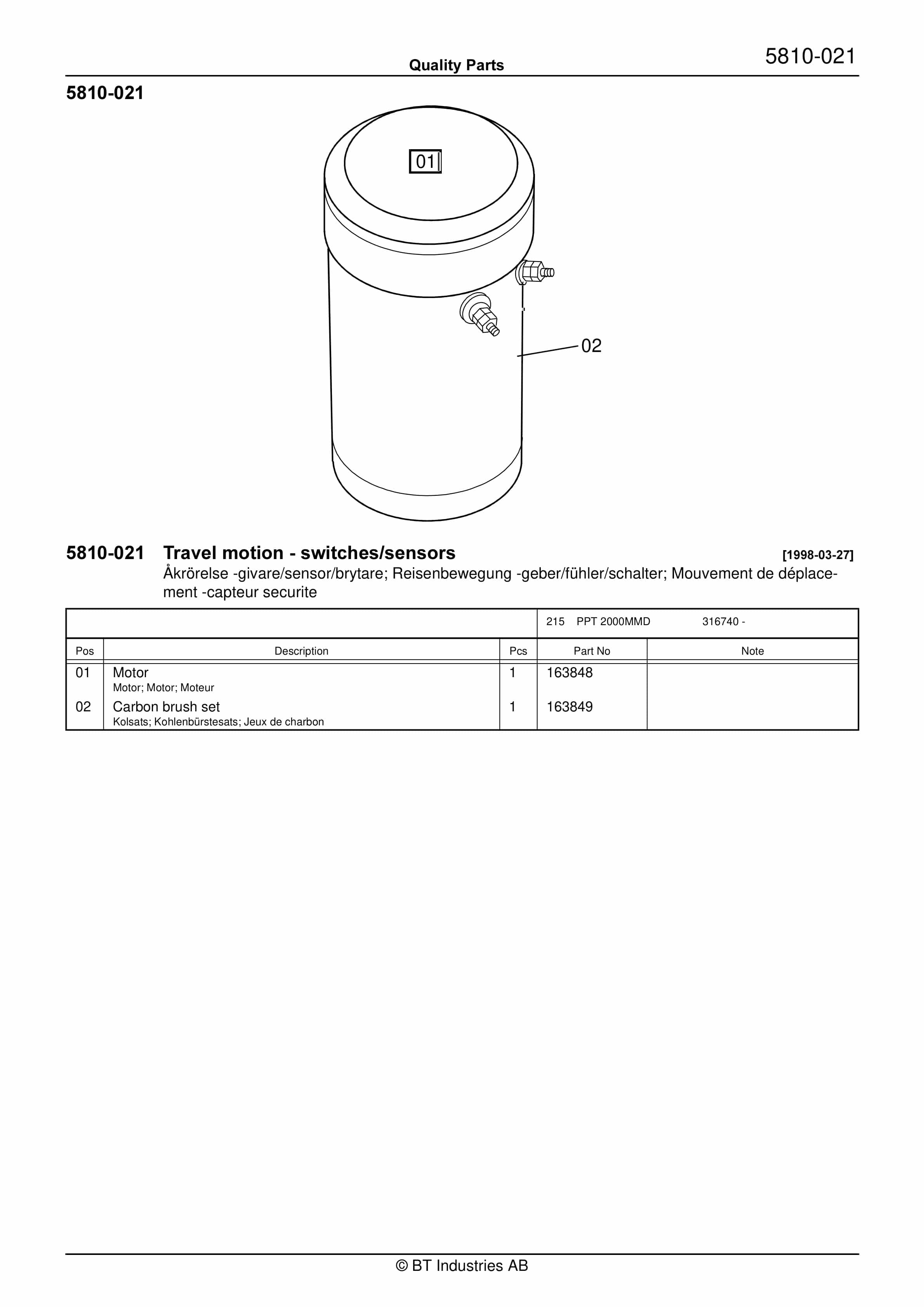 BT BTL20EW, BTL20EWO, BTL30EW, BTL30EWO, L20BR, L20BRO, L30BR, L30BRO Quality Parts 177967