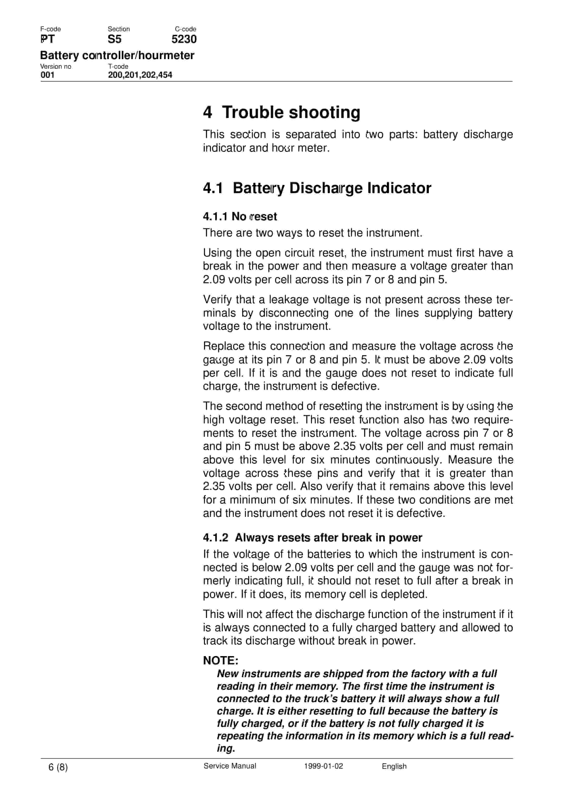- 6.7.11. Instrument Combined hour meter/battery controller or hour meter only.