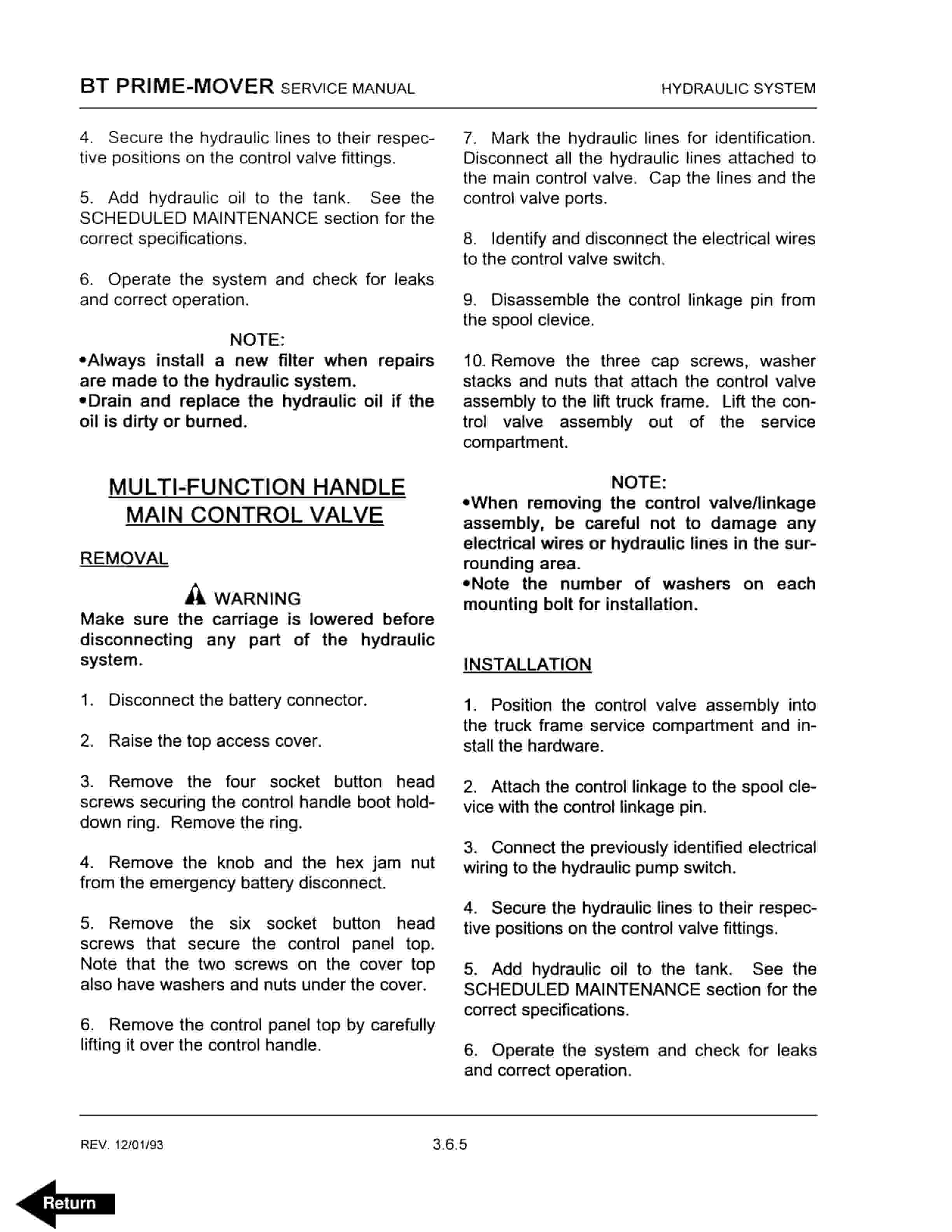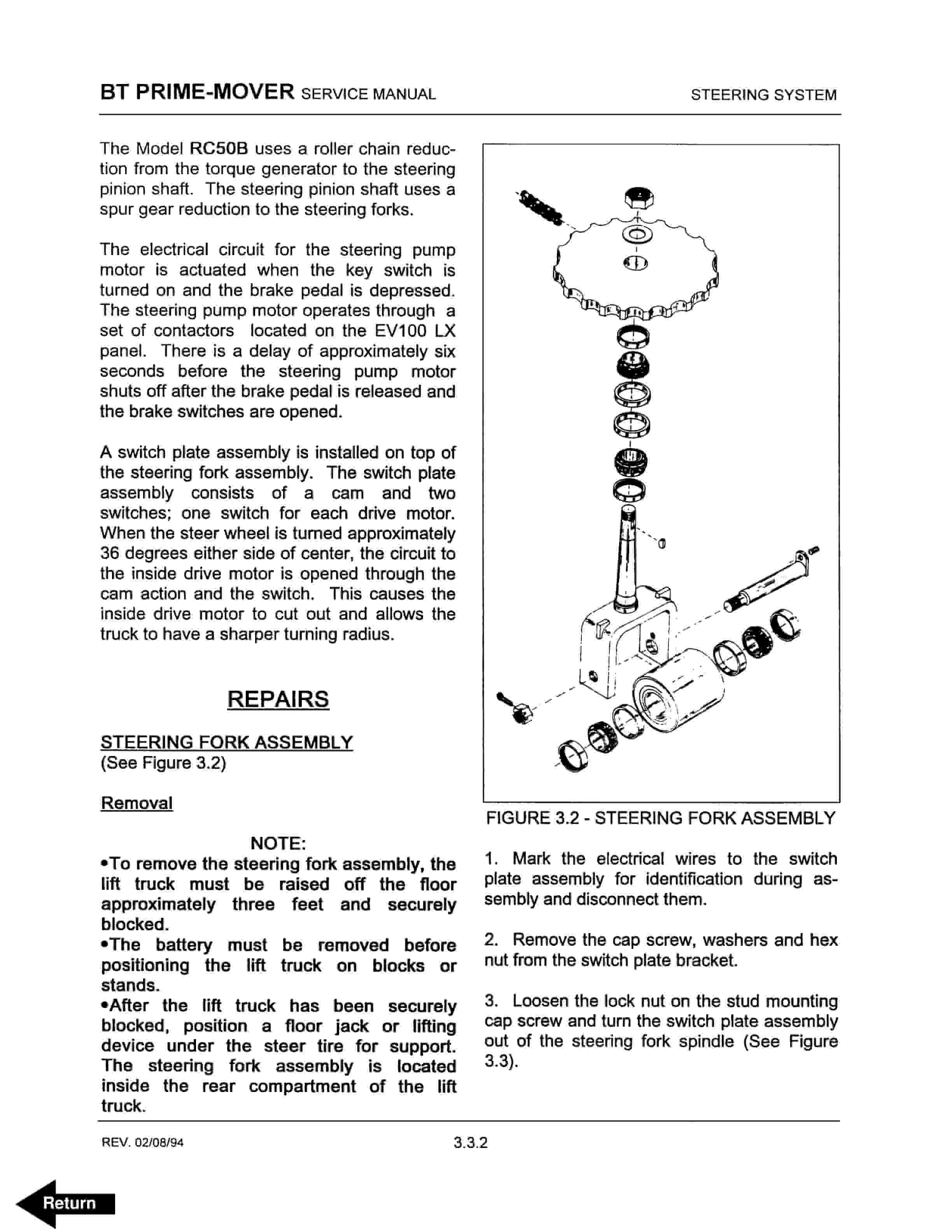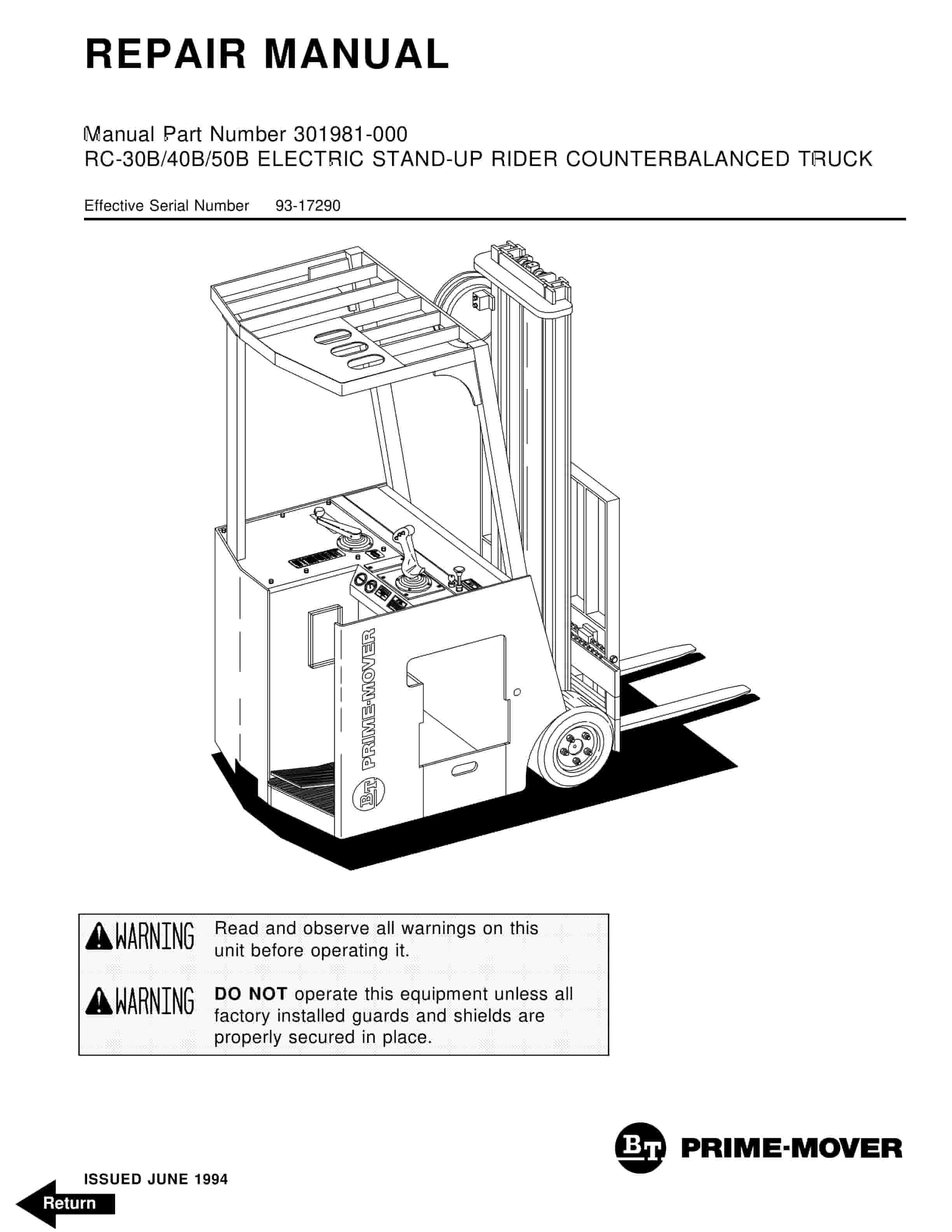 BT RC-30B, RC-40B, RC-50B Electric Stand-Up Rider Counterbalanced Truck Repair Manual 301981-000