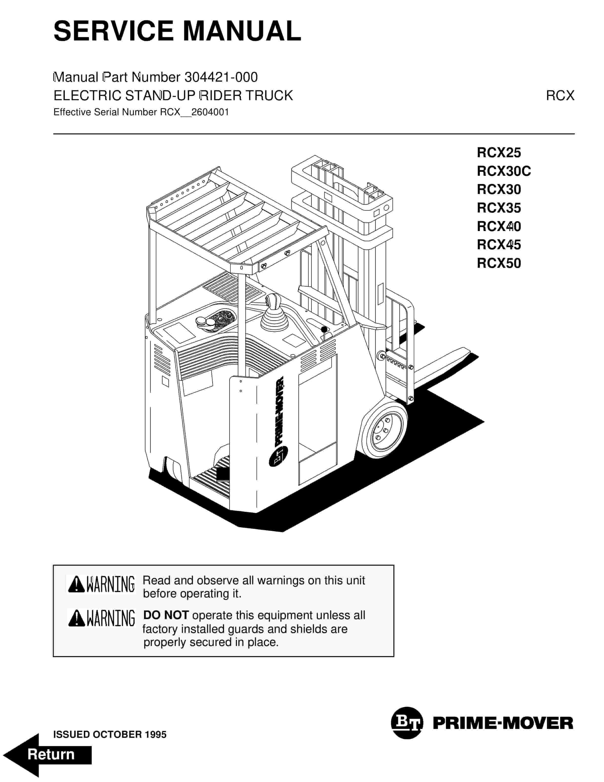 BT RCX 25-50 Electric Stand-Up Rider Truck Service Manual 304421-000