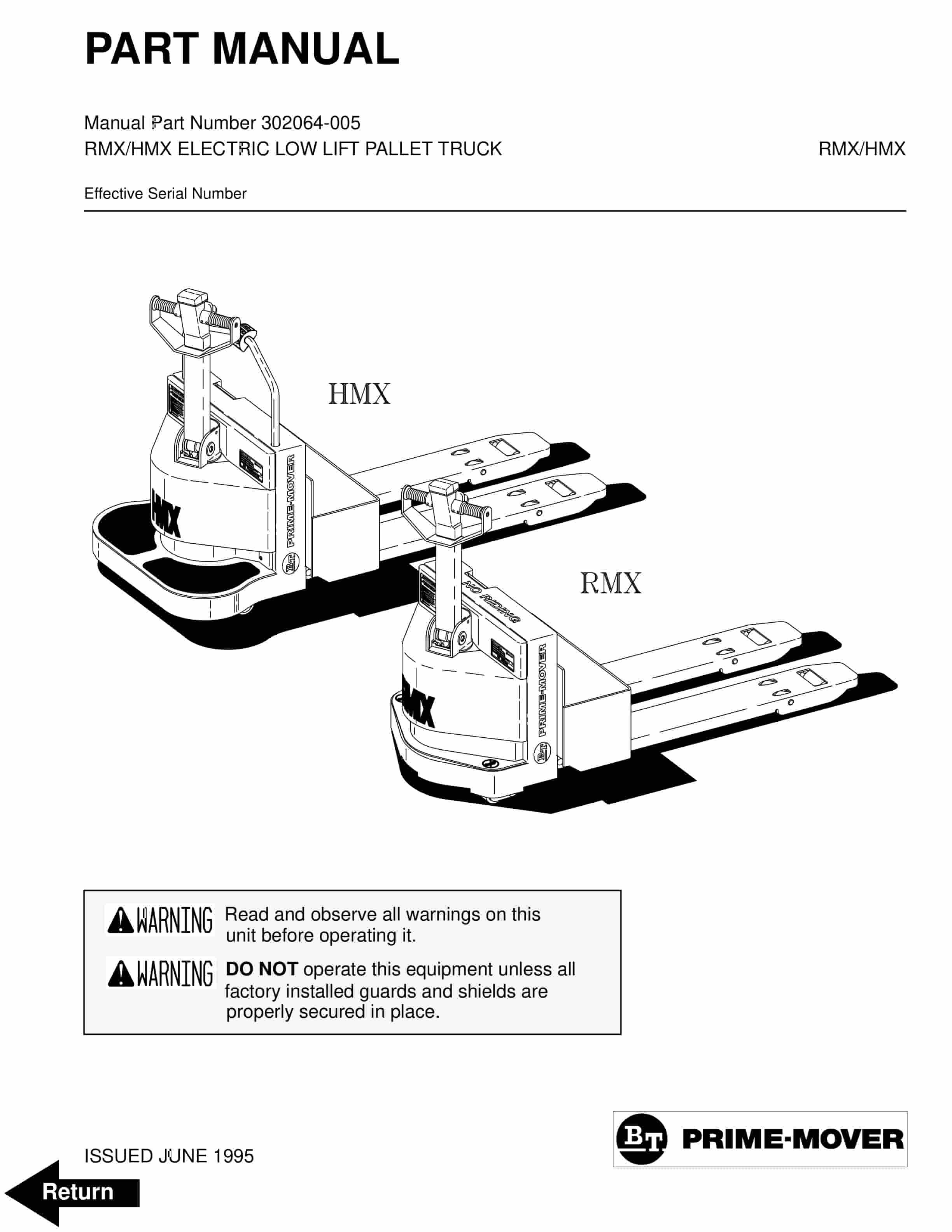 BT RMX, HMX Electric Low Lift Pallet Truck Parts Manual 302064-005