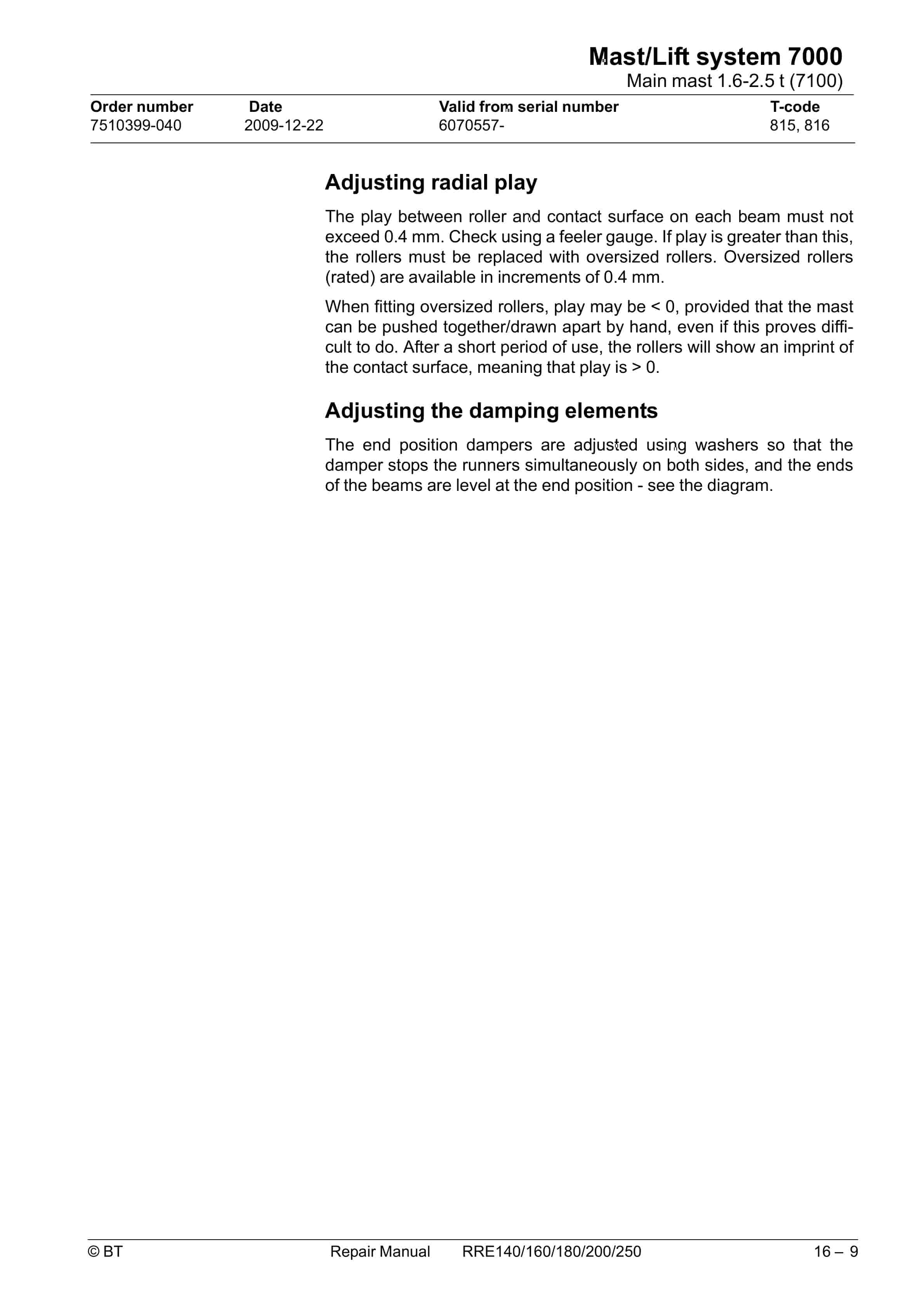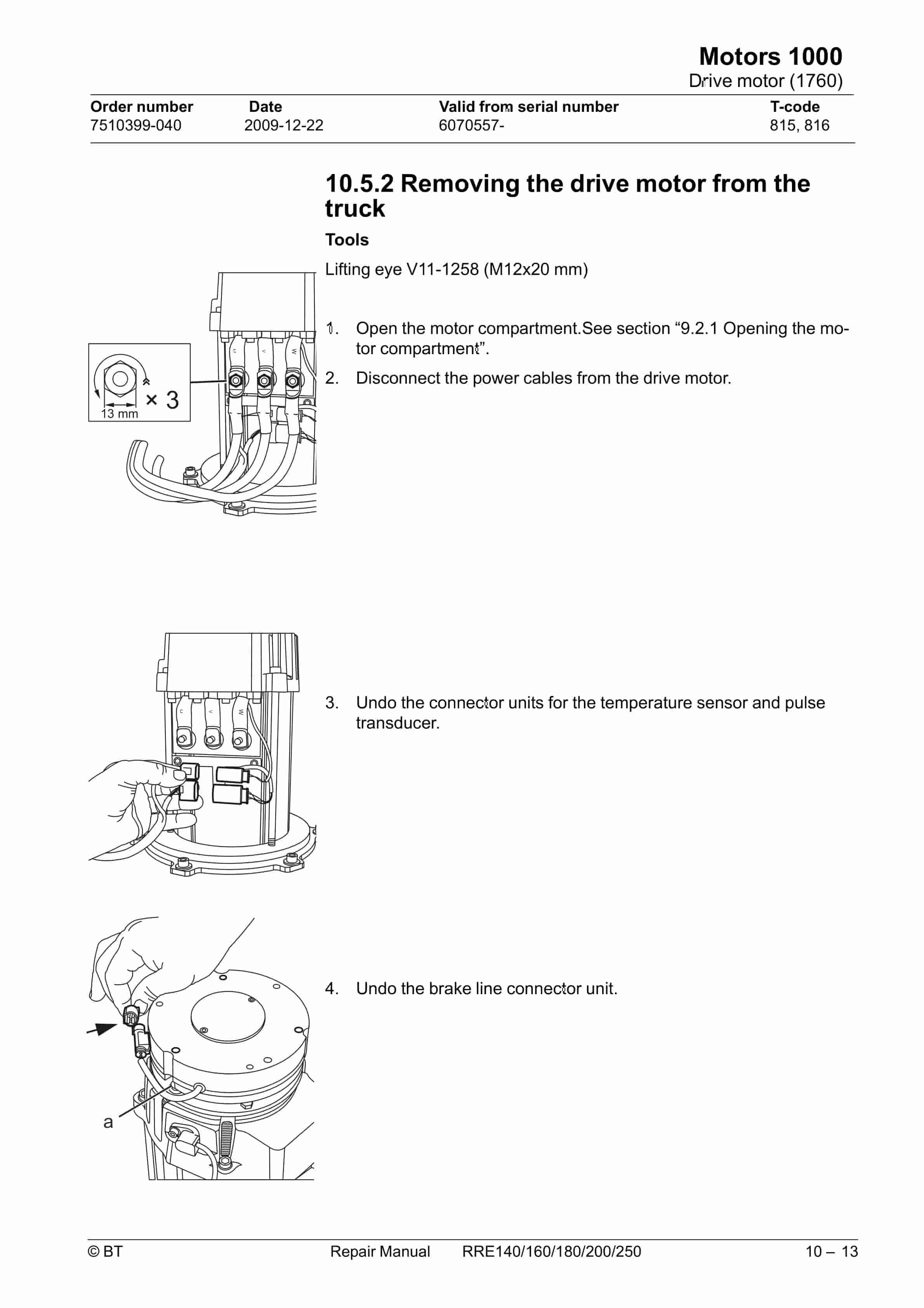 BT RPE140, RPE160, RPE180, RPE200, RPE250 Repair Manual 7510399-040