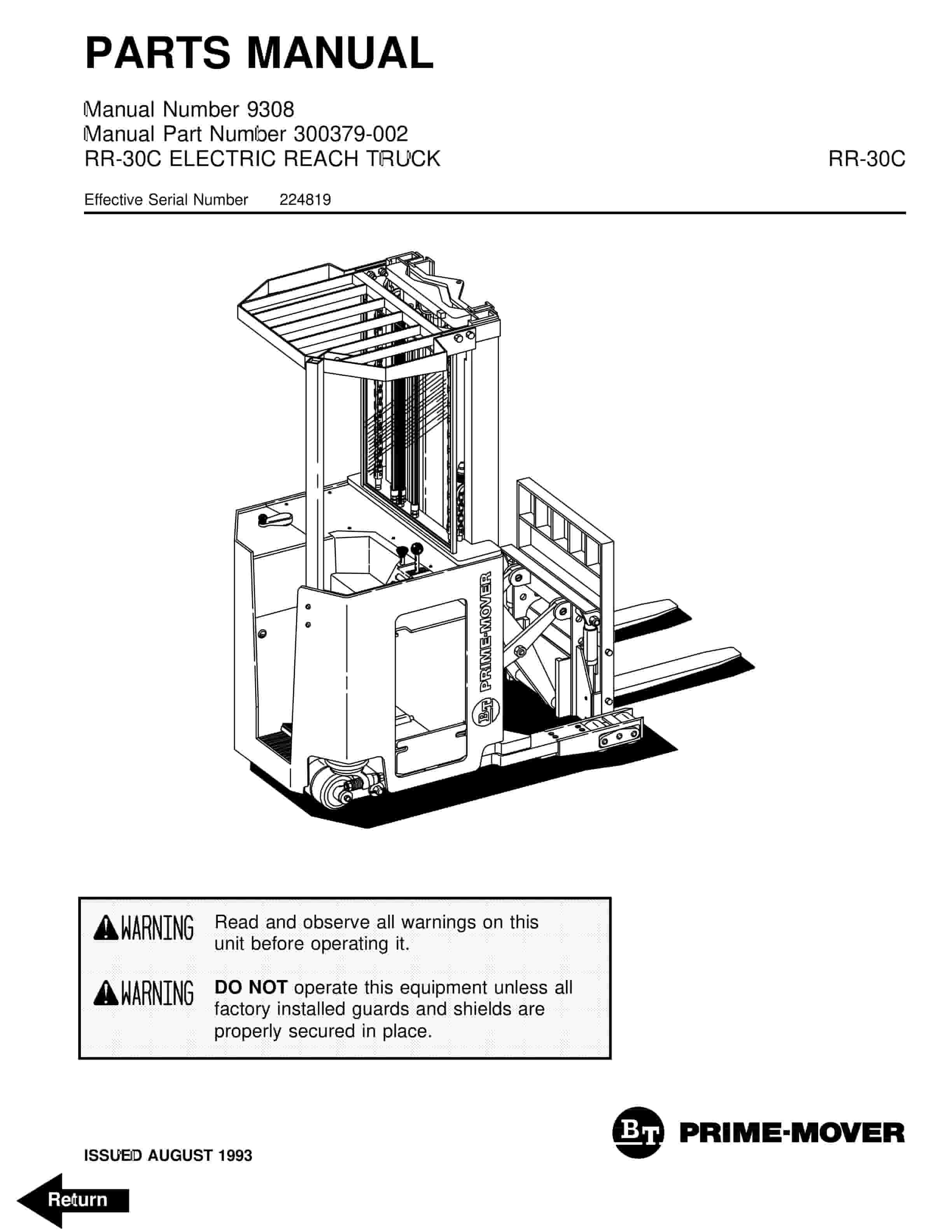 BT RR-30C Electric Reach Truck Parts Manual 300379-002