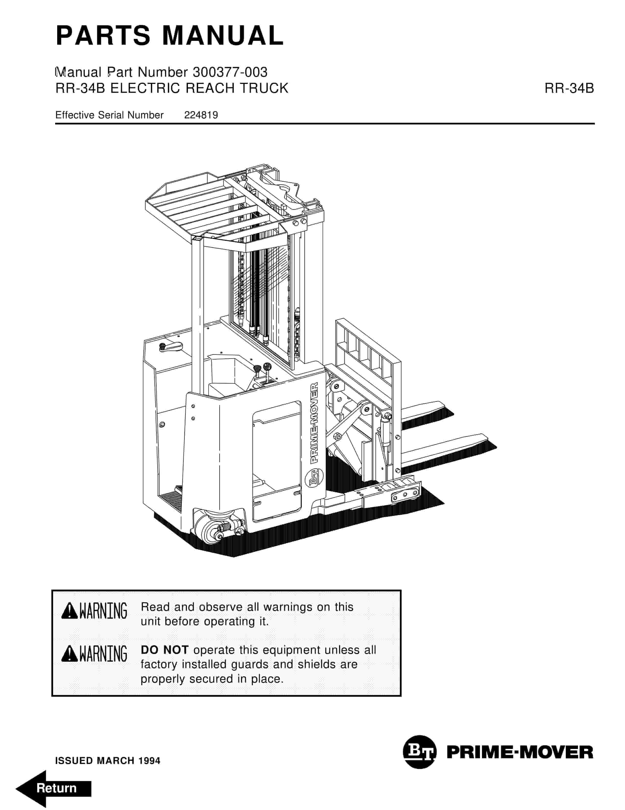 BT RR-34B Electric Reach Truck Parts Manual 300377-003