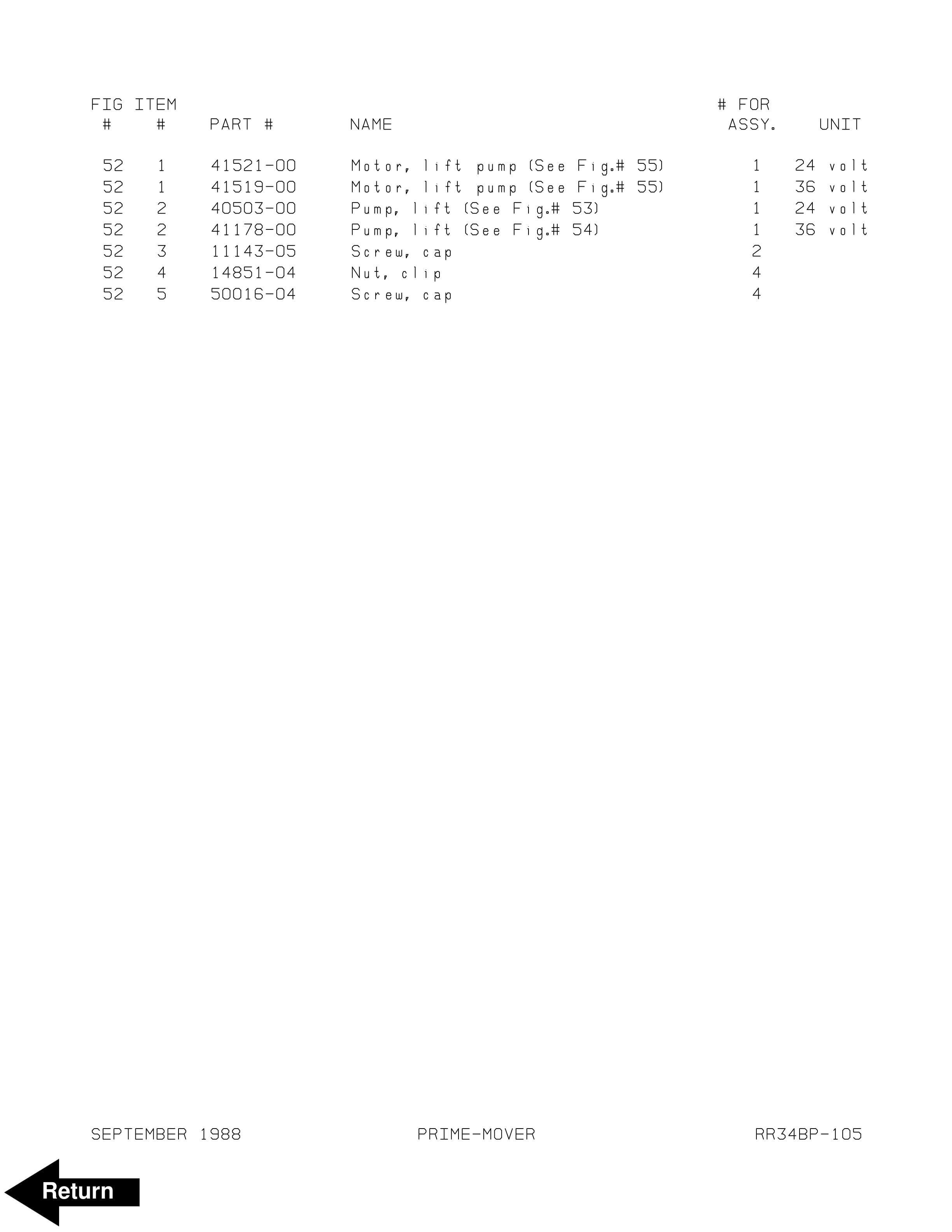 • 60. Figure 54 36 Volt Lift Pump Assembly