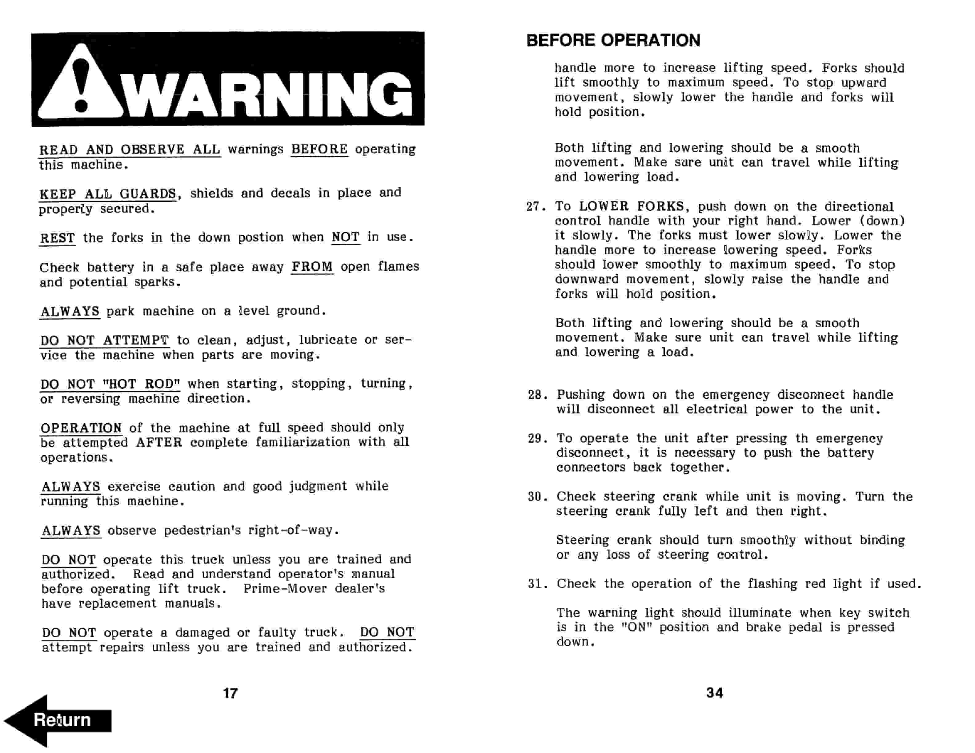 - 9.4. When a Powered Industrial Truck is to be Left Unattended