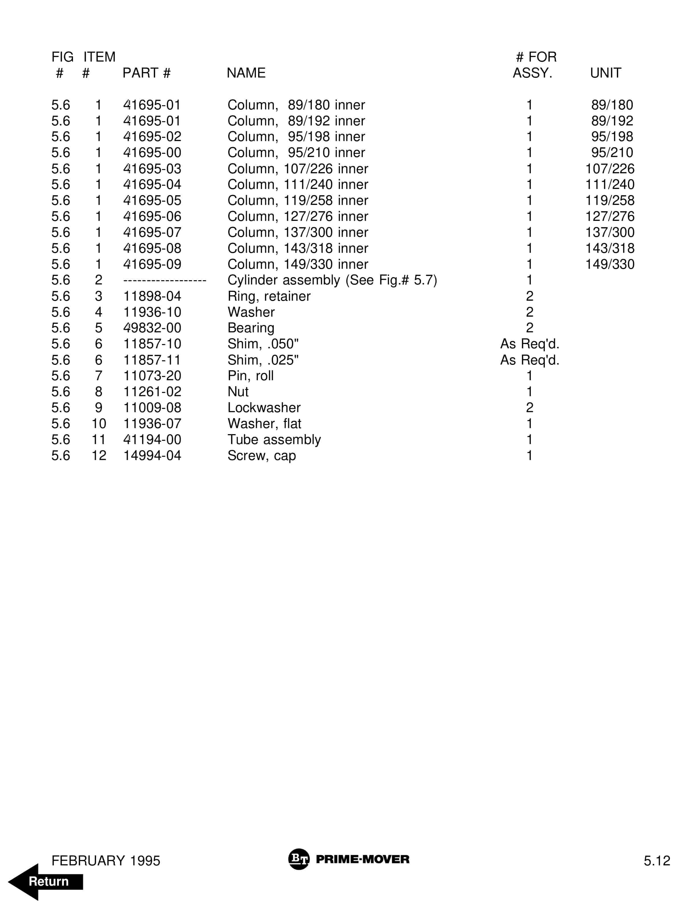 BT 602-TT, 608-TT, 609-TT, 610-TT, 612-TT, 620-TT Quality Parts 7501655