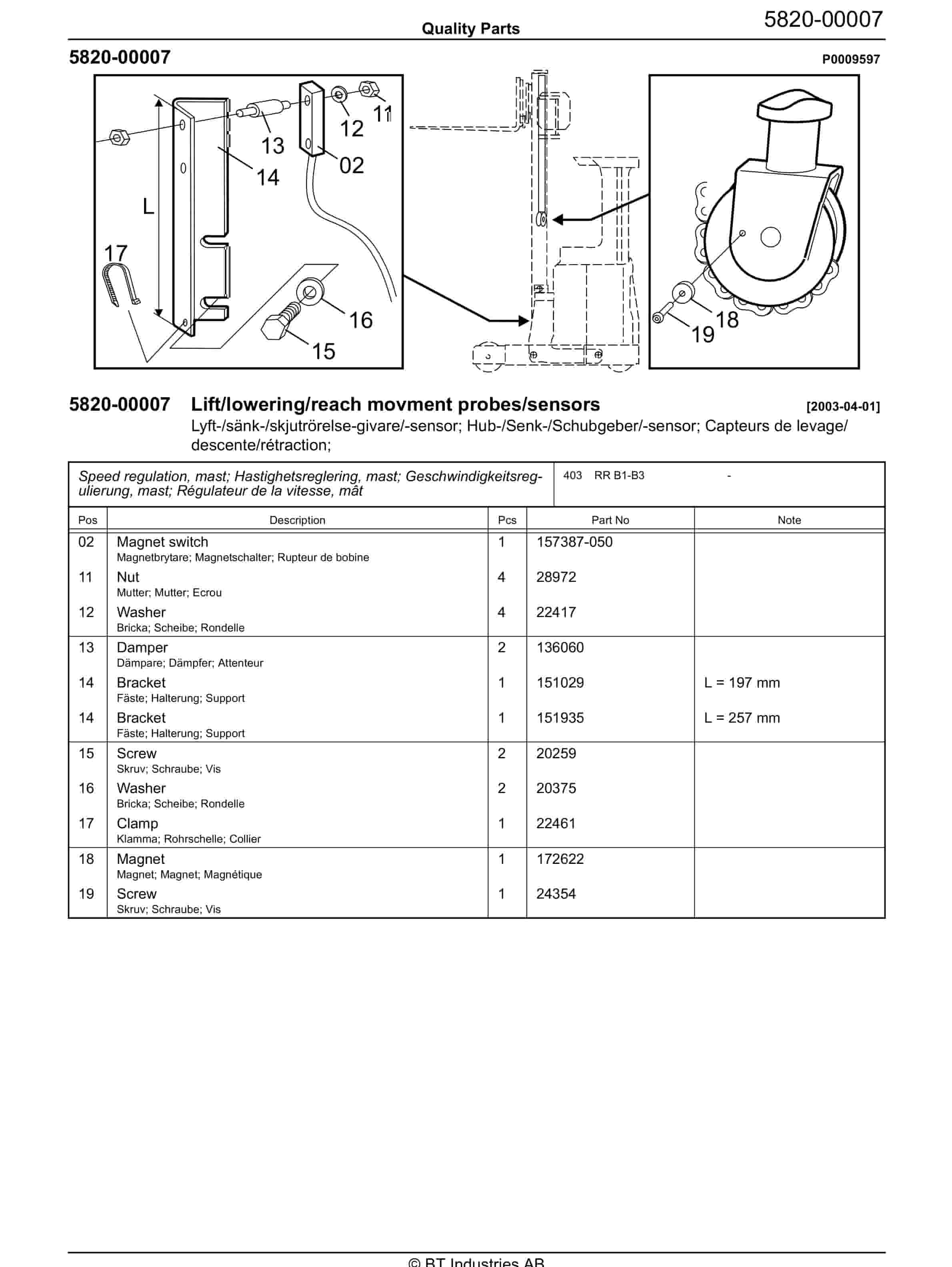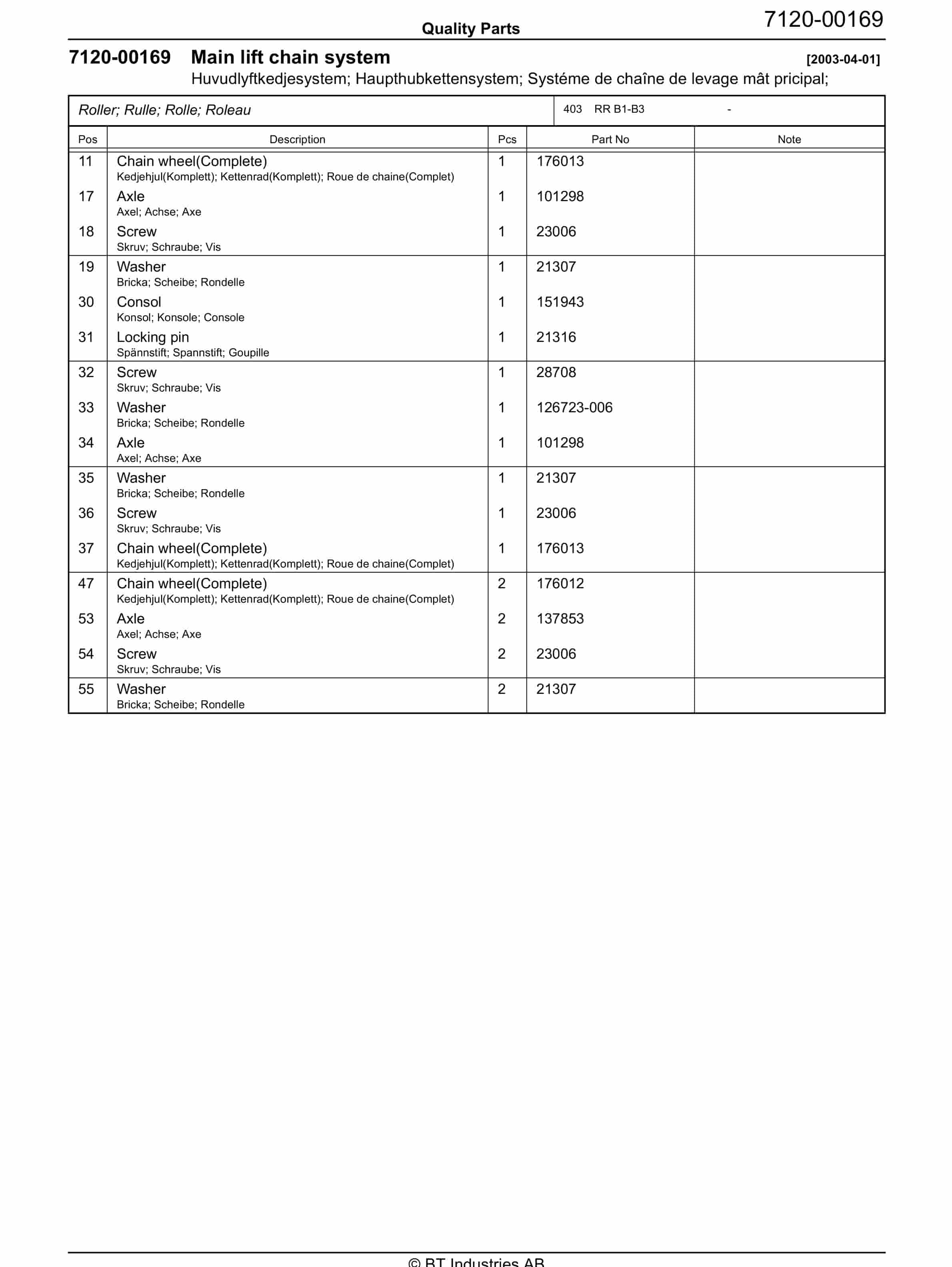 BT RR B1-B3 – C020710-6 Quality Parts 847876