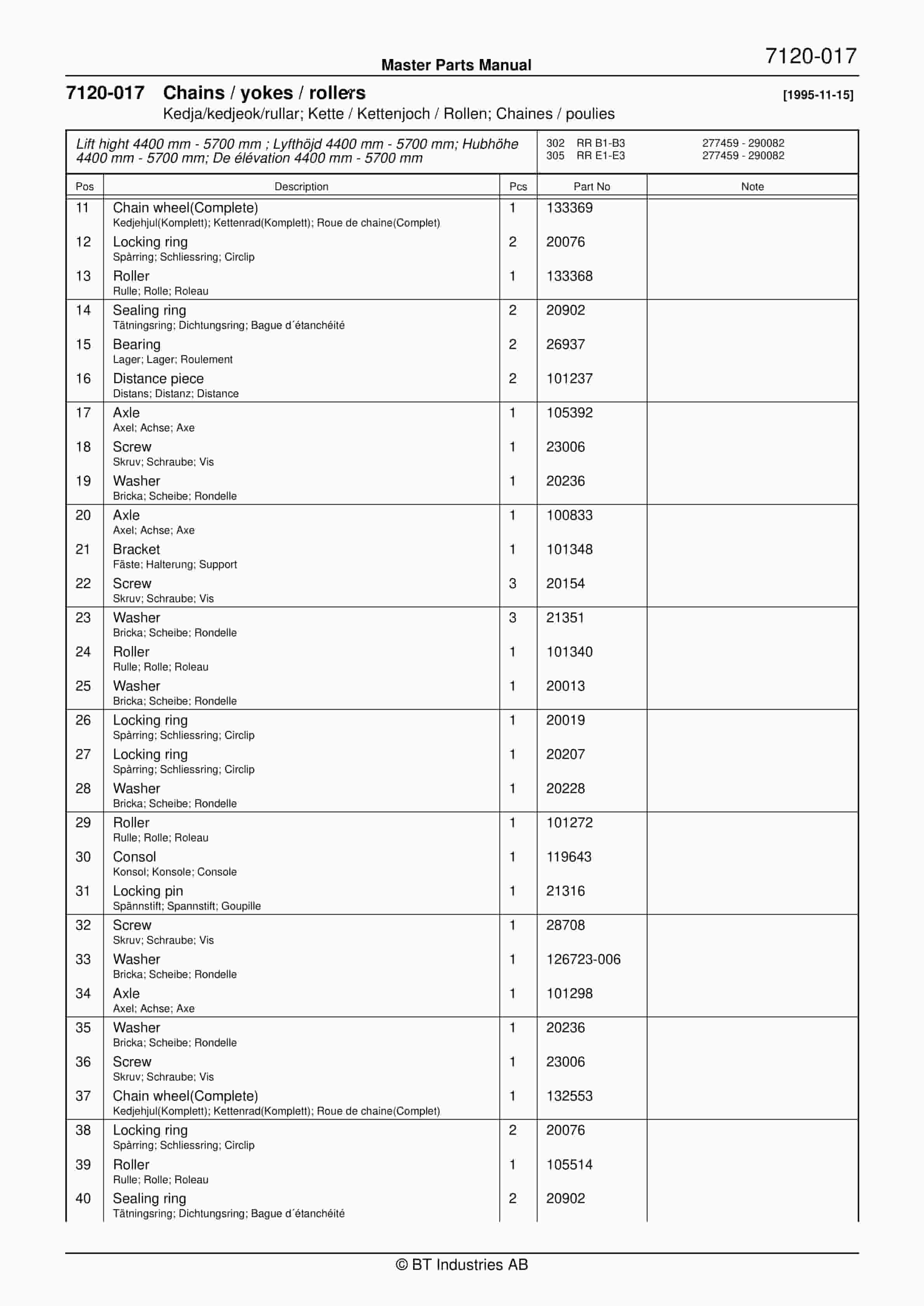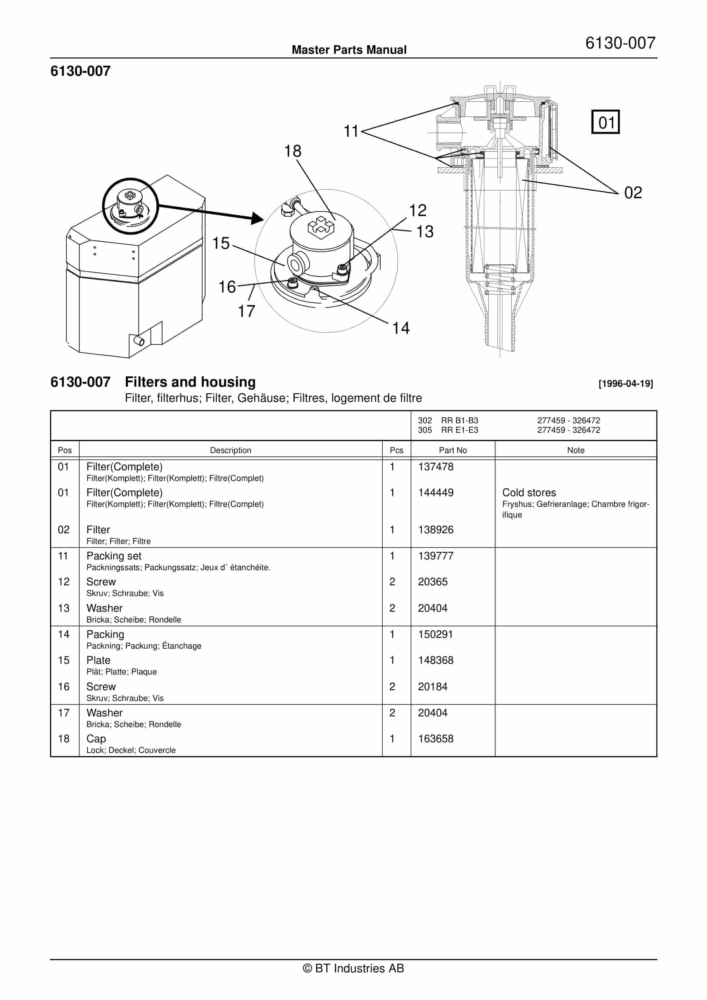 BT RR B1, RR B2, RR B3, RR E1, RR E2, RR E3(C), RR 14, RR DC Parts Manual 174268