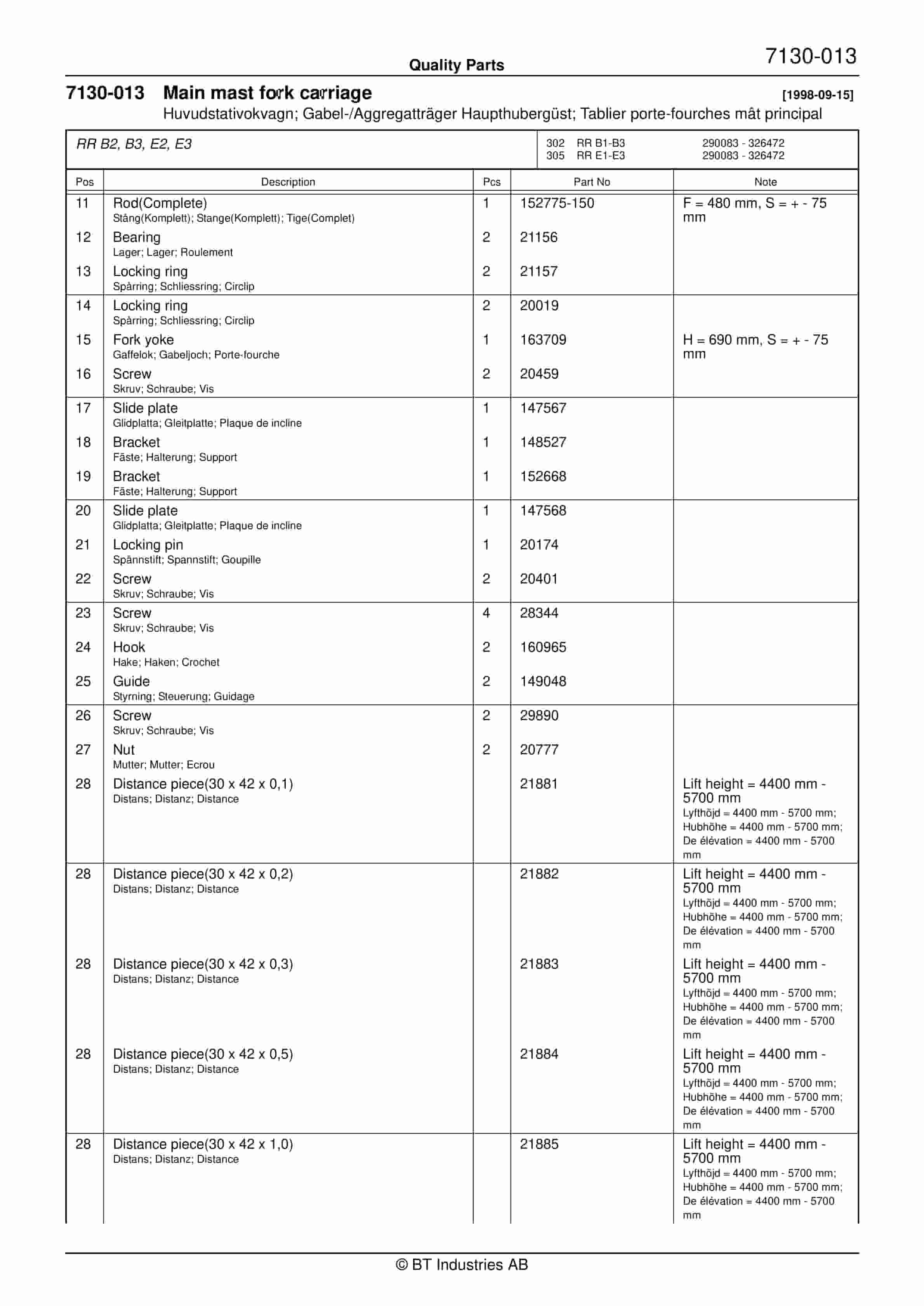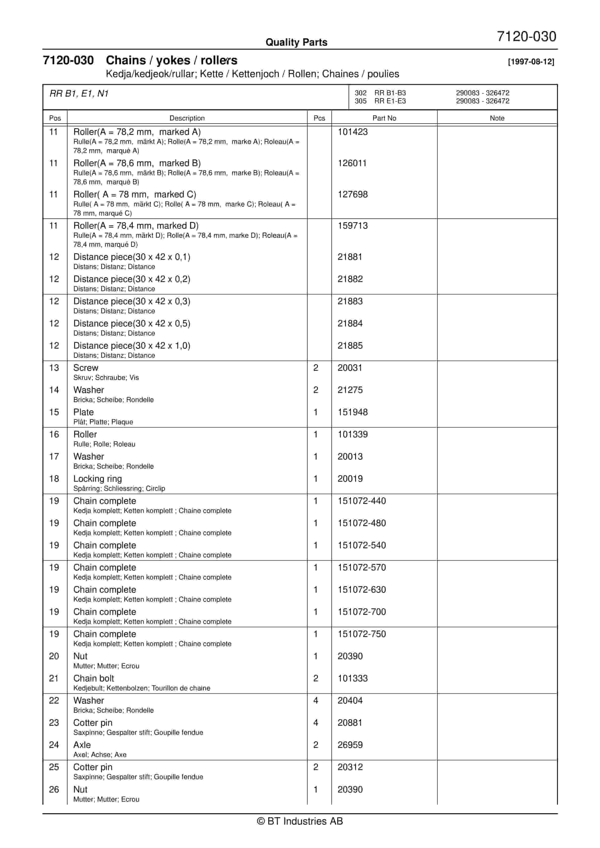 BT RR B1, RR B2, RR B3, RR E1, RR E2, RR E3(C), RR 14, RR DC Quality Parts 157301