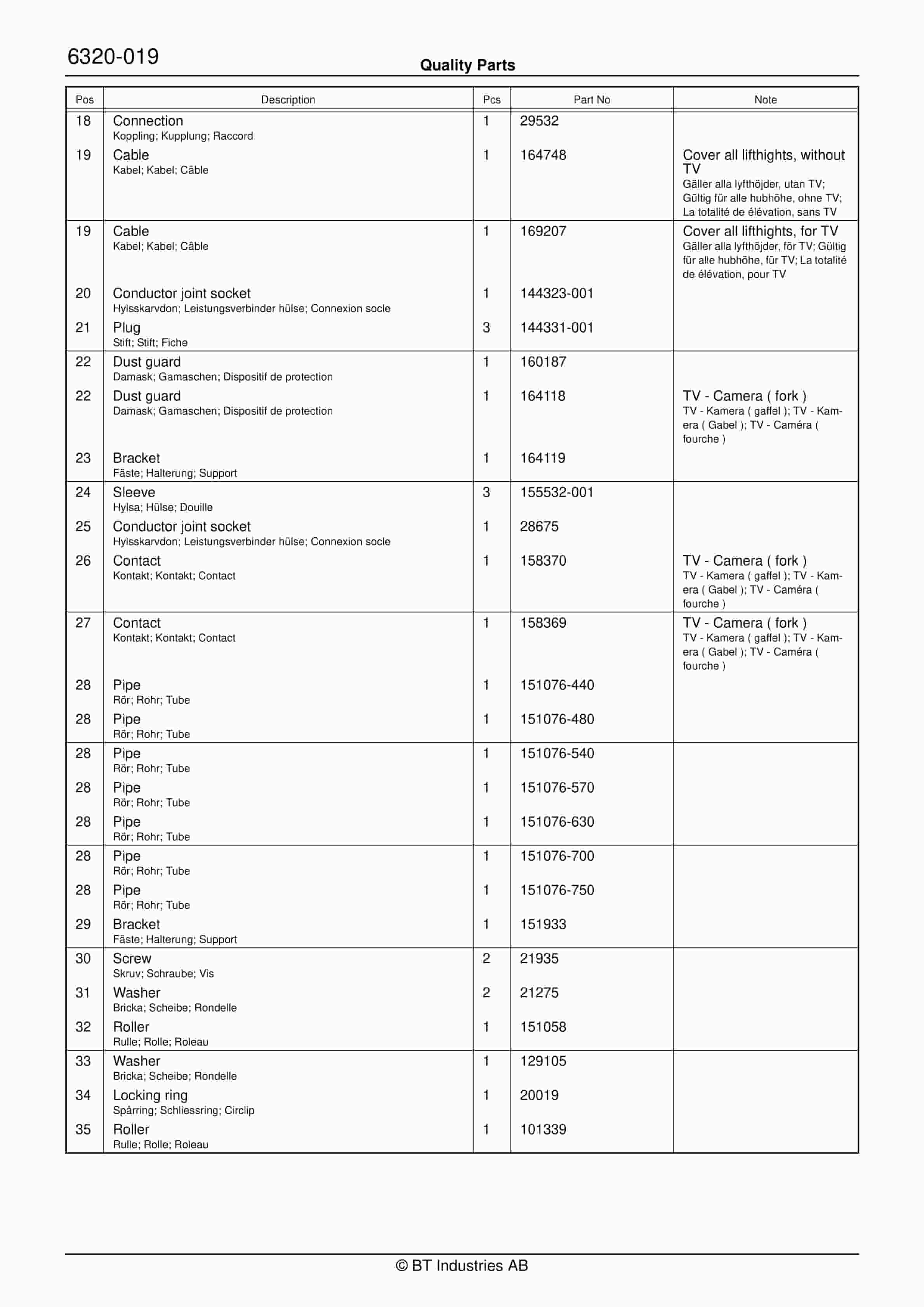 BT 600-TT, 602-TT, 604-TT, 608-TT, 609-TT, 610-TT, 612-TT, 620-TT Quality Parts 208538