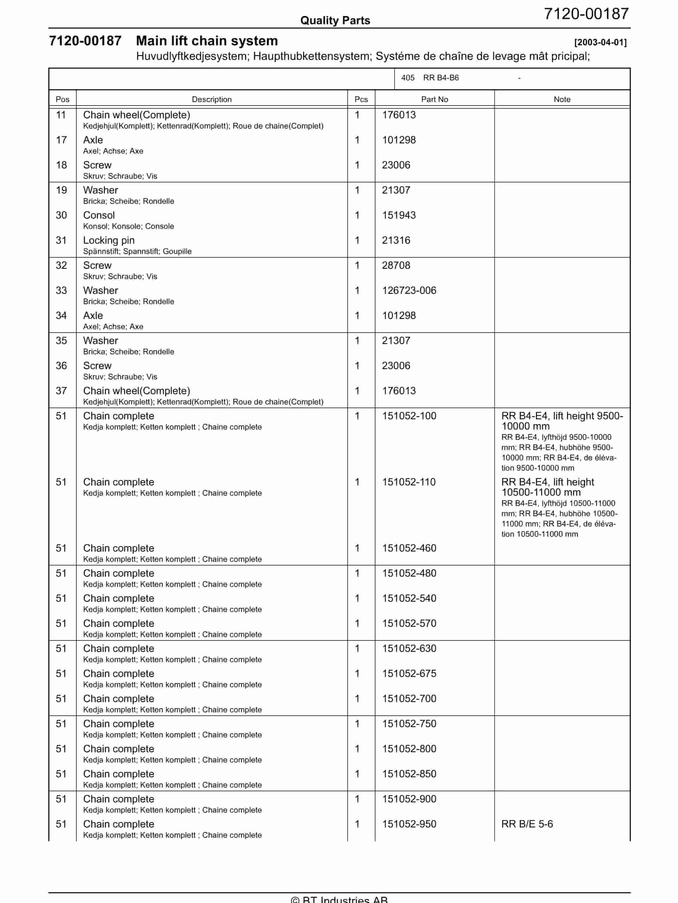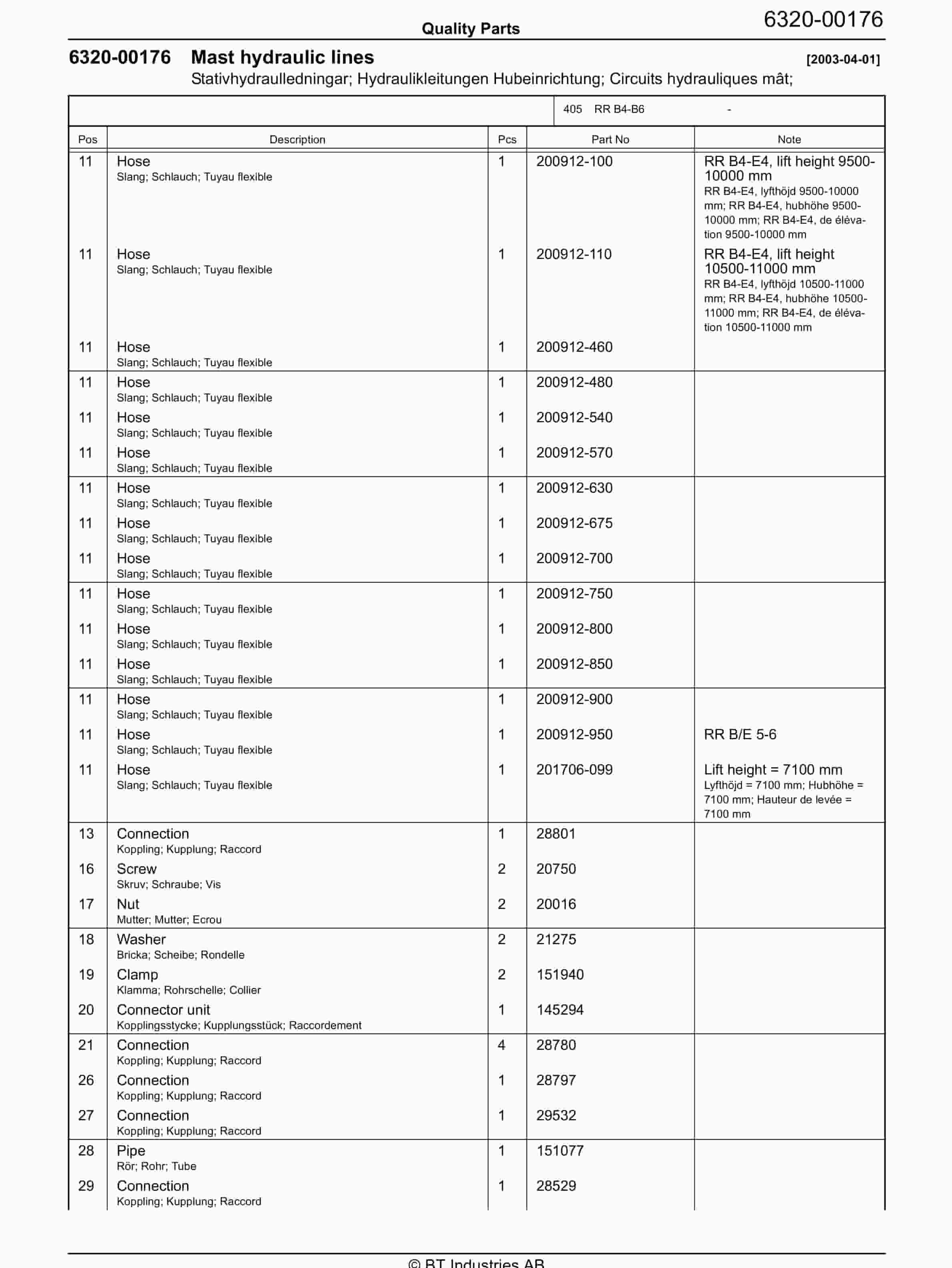 BT RR B4-B6 – C021121-1 – C030507-0 Quality Parts 847930