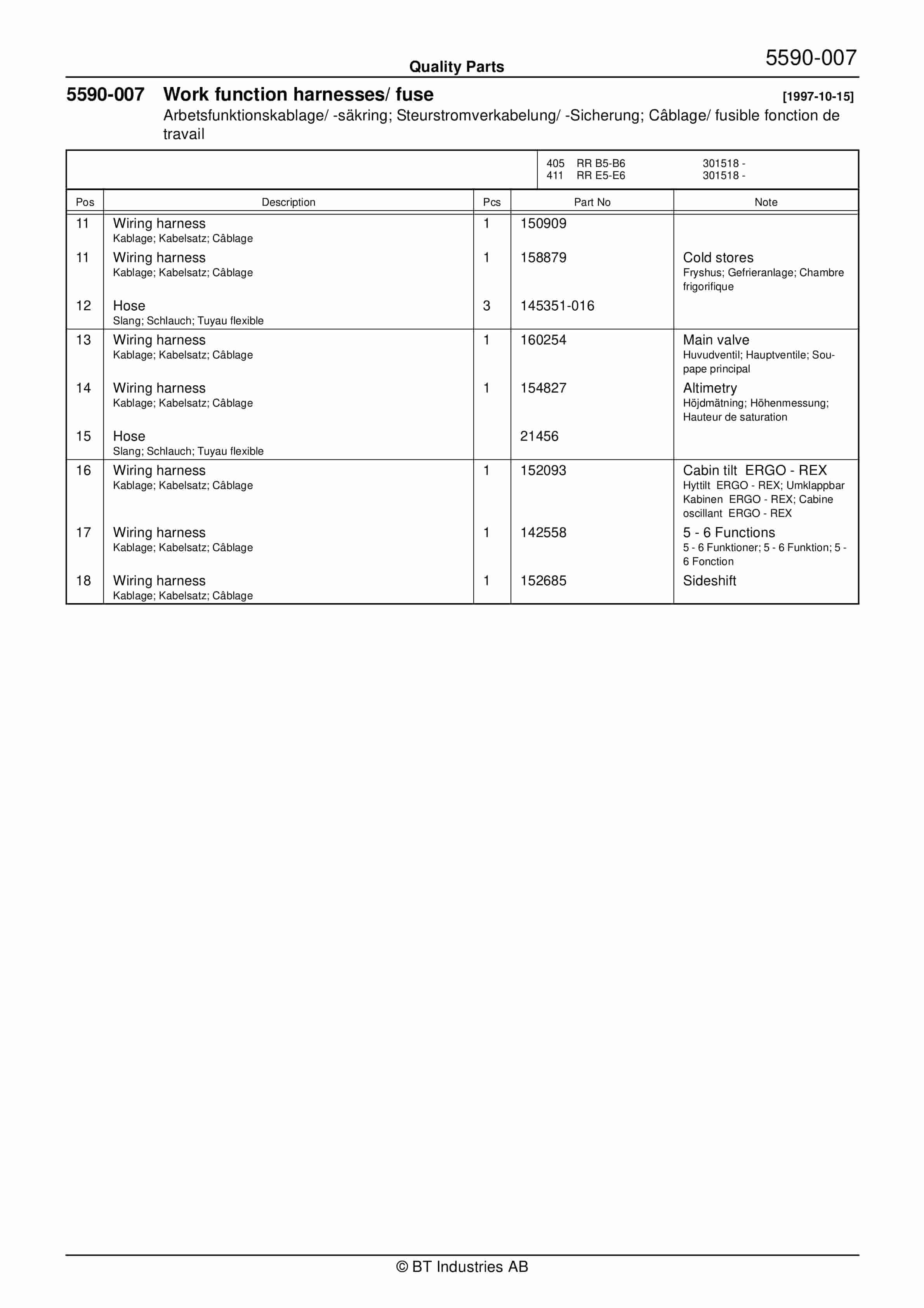 BT BTL20EW, BTL20EWO, BTL30EW, BTL30EWO, L20BR, L20BRO, L30BR, L30BRO Quality Parts 177967