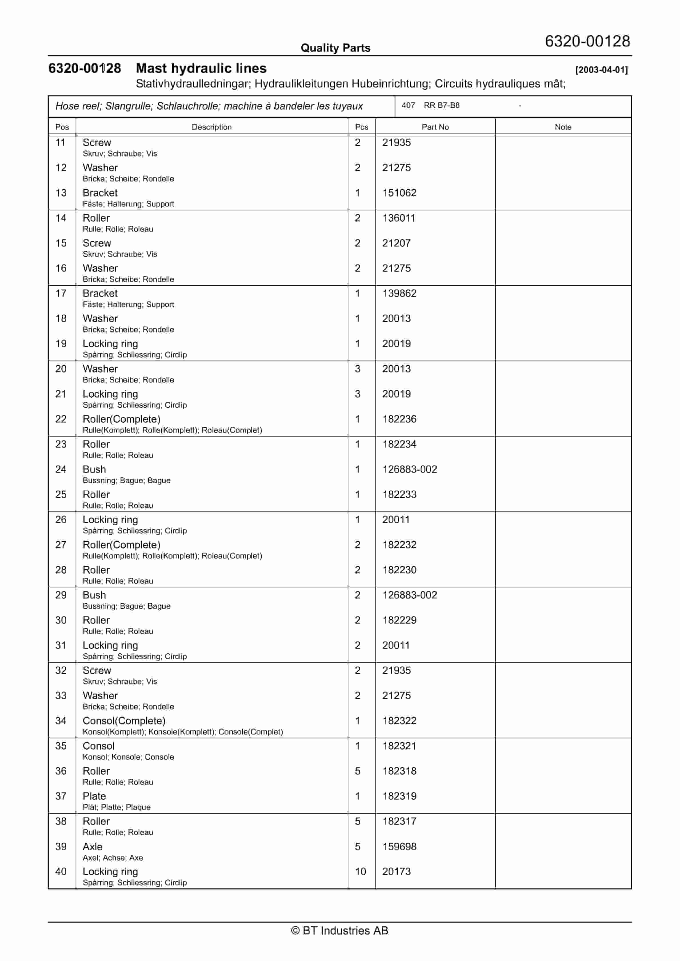 BT CARGO C3E 100R, C3E 130R, C3E 150R Spare Parts Catalog 0350190R1