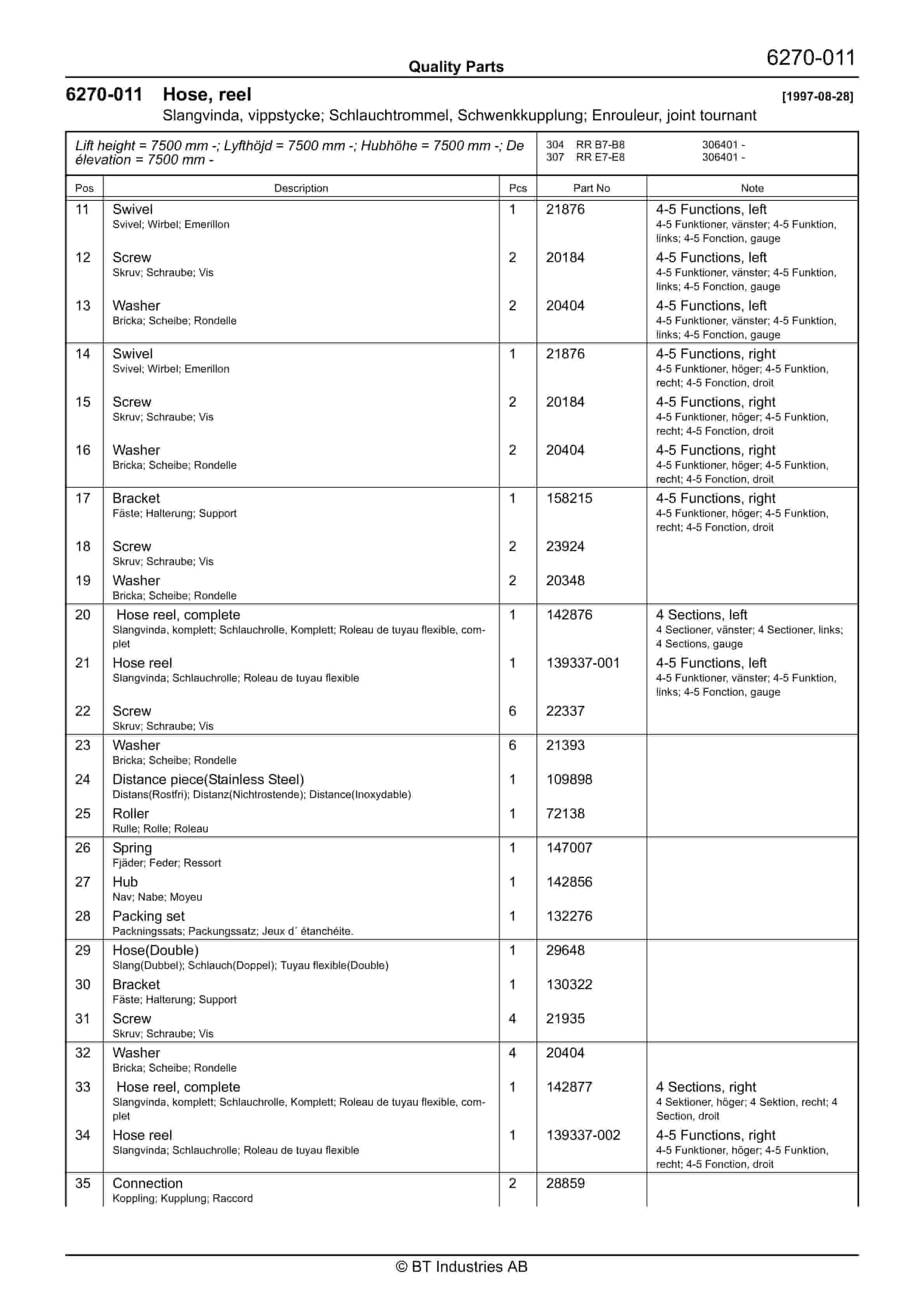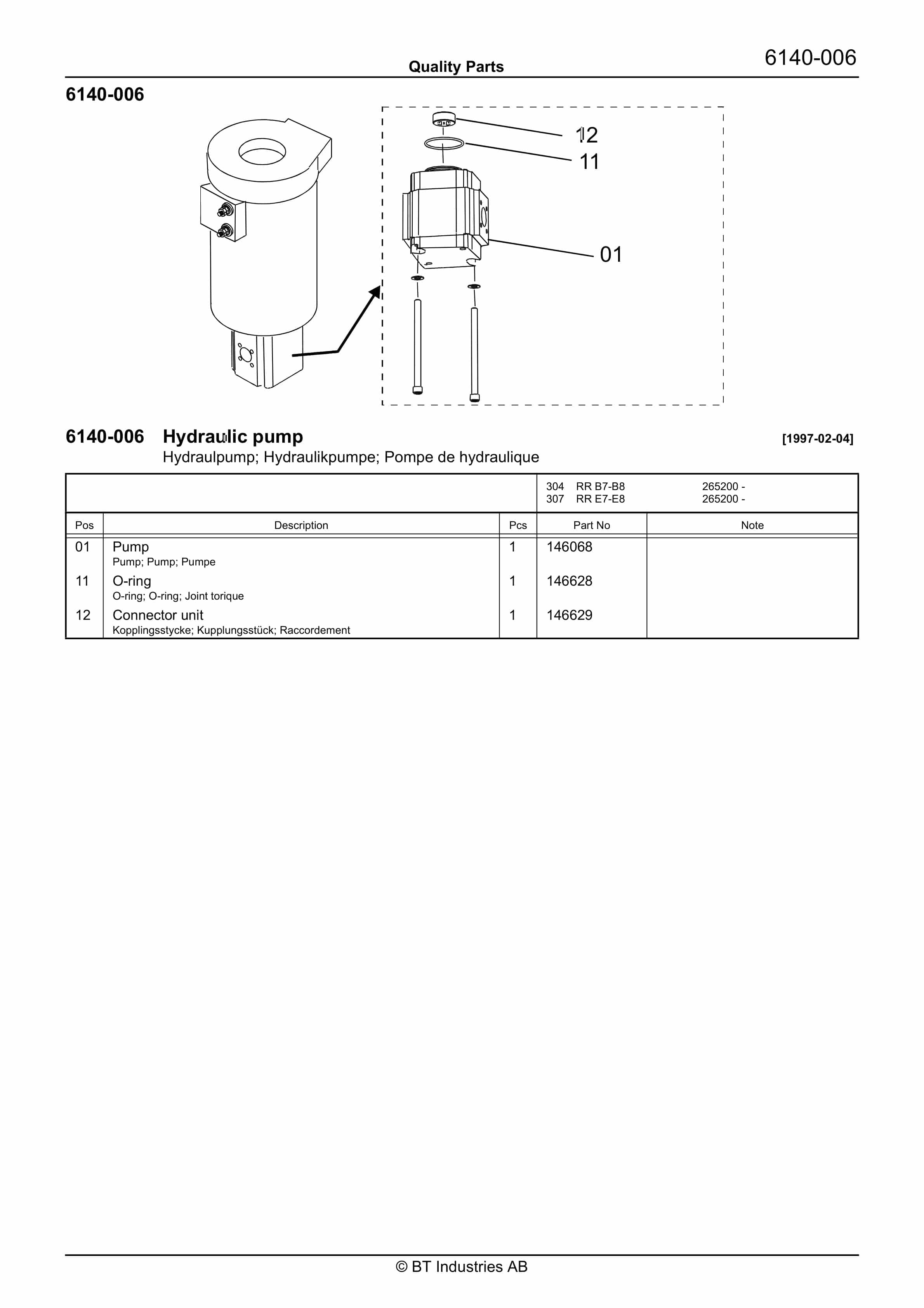 BT 602-TT, 608-TT, 609-TT, 610-TT, 612-TT, 620-TT Quality Parts 7504691