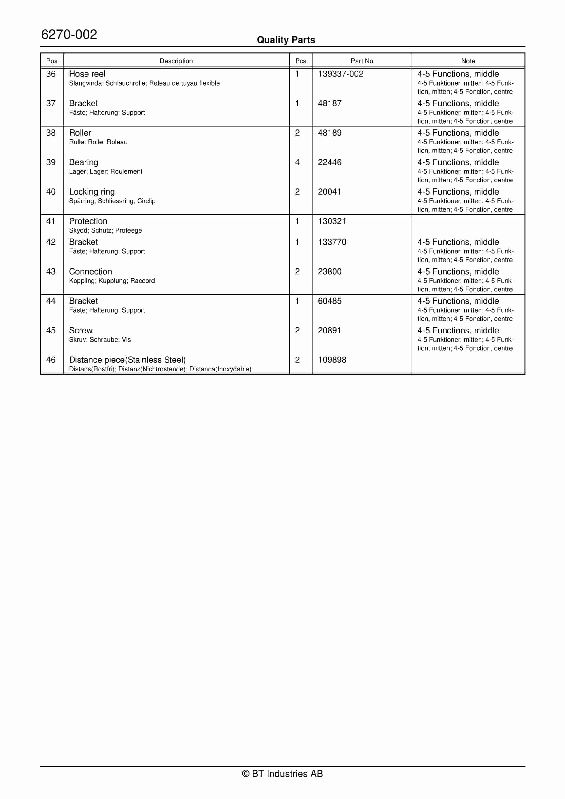 BT 602-TT, 608-TT, 609-TT, 610-TT, 612-TT, 620-TT (AC) Quality Parts 253711