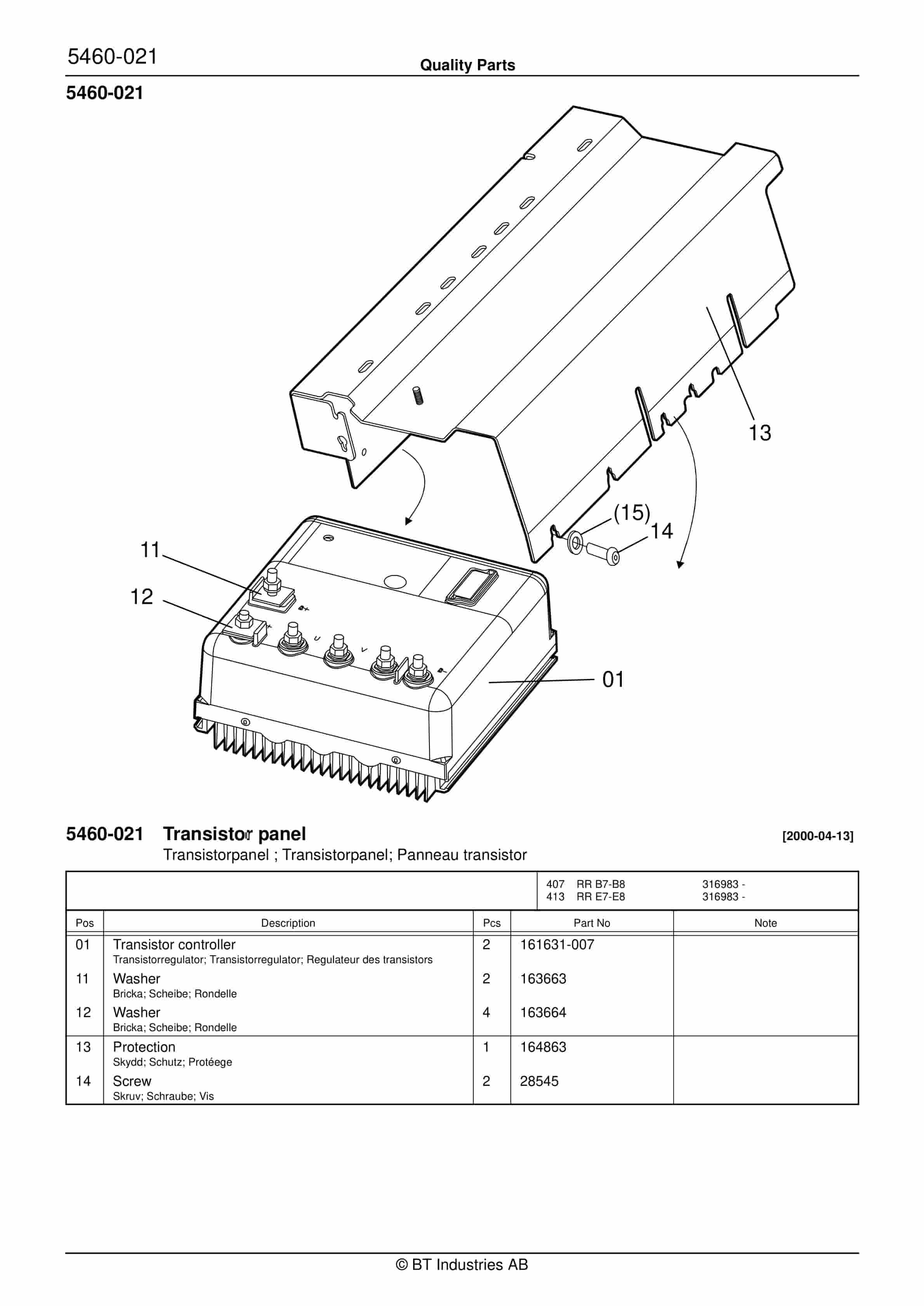 BT BTL20EW, BTL20EWO, BTL30EW, BTL30EWO, L20BR, L20BRO, L30BR, L30BRO Quality Parts 177967