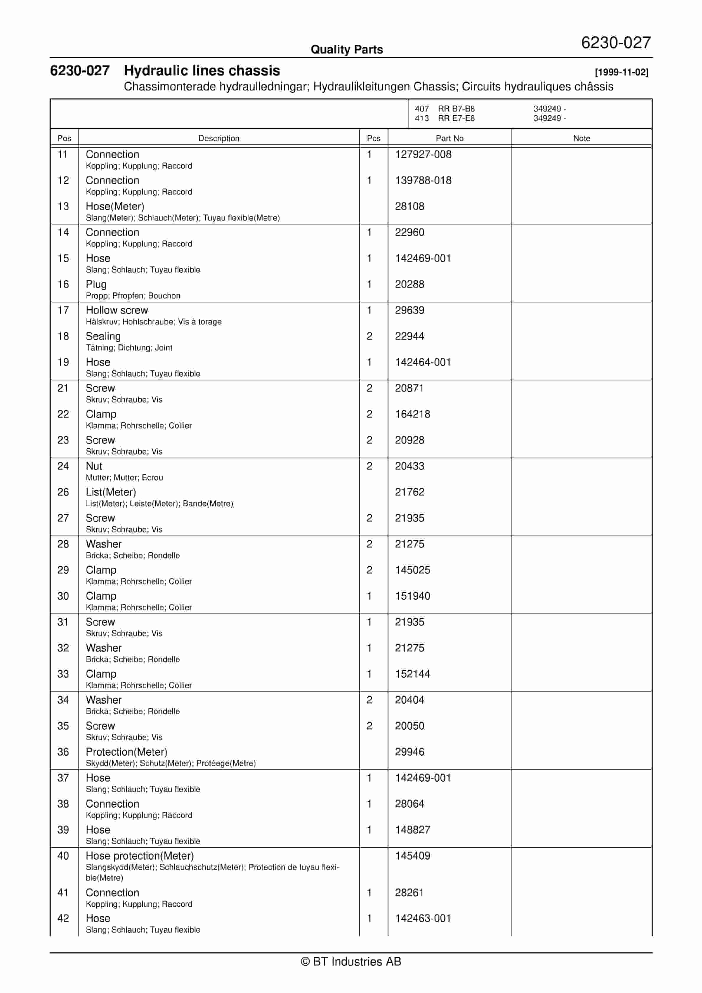 BT 602-TT, 608-TT, 609-TT, 610-TT, 612-TT, 620-TT Quality Parts 229210