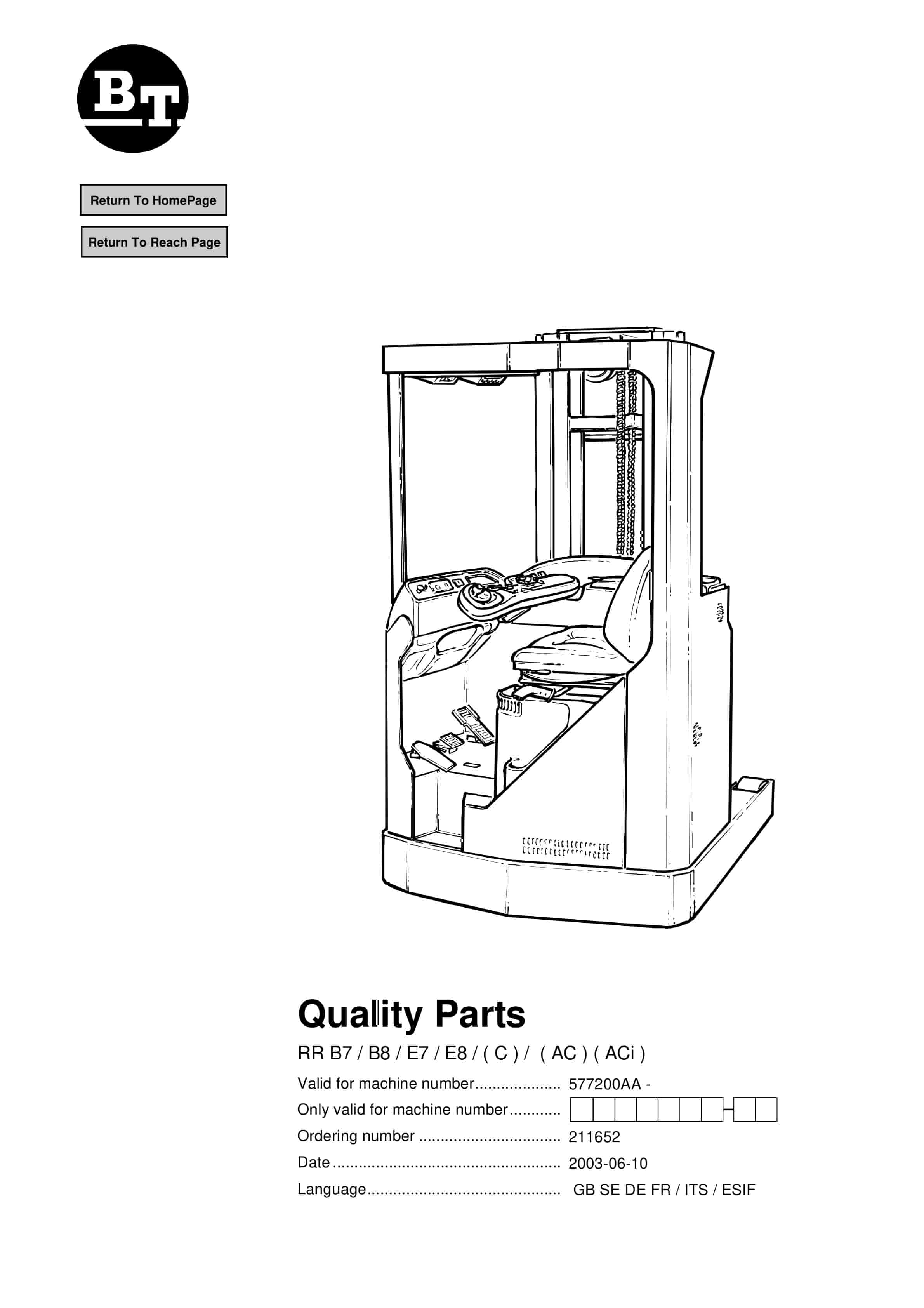 BT C4E 200NL Spare Parts Catalog 0350175R1-0Alternative view of BT C4E 200NL Spare Parts Catalog 0350175R1-0