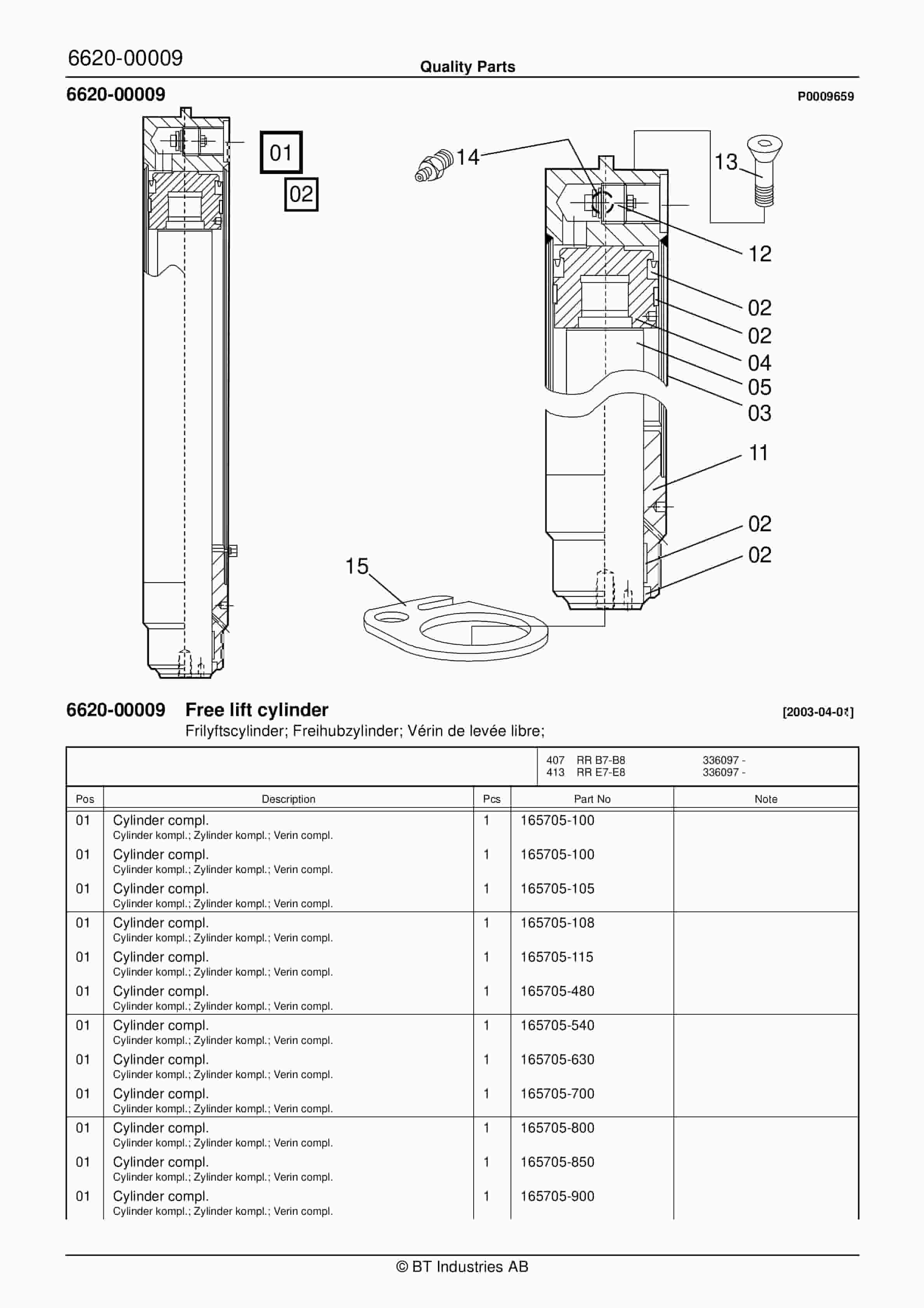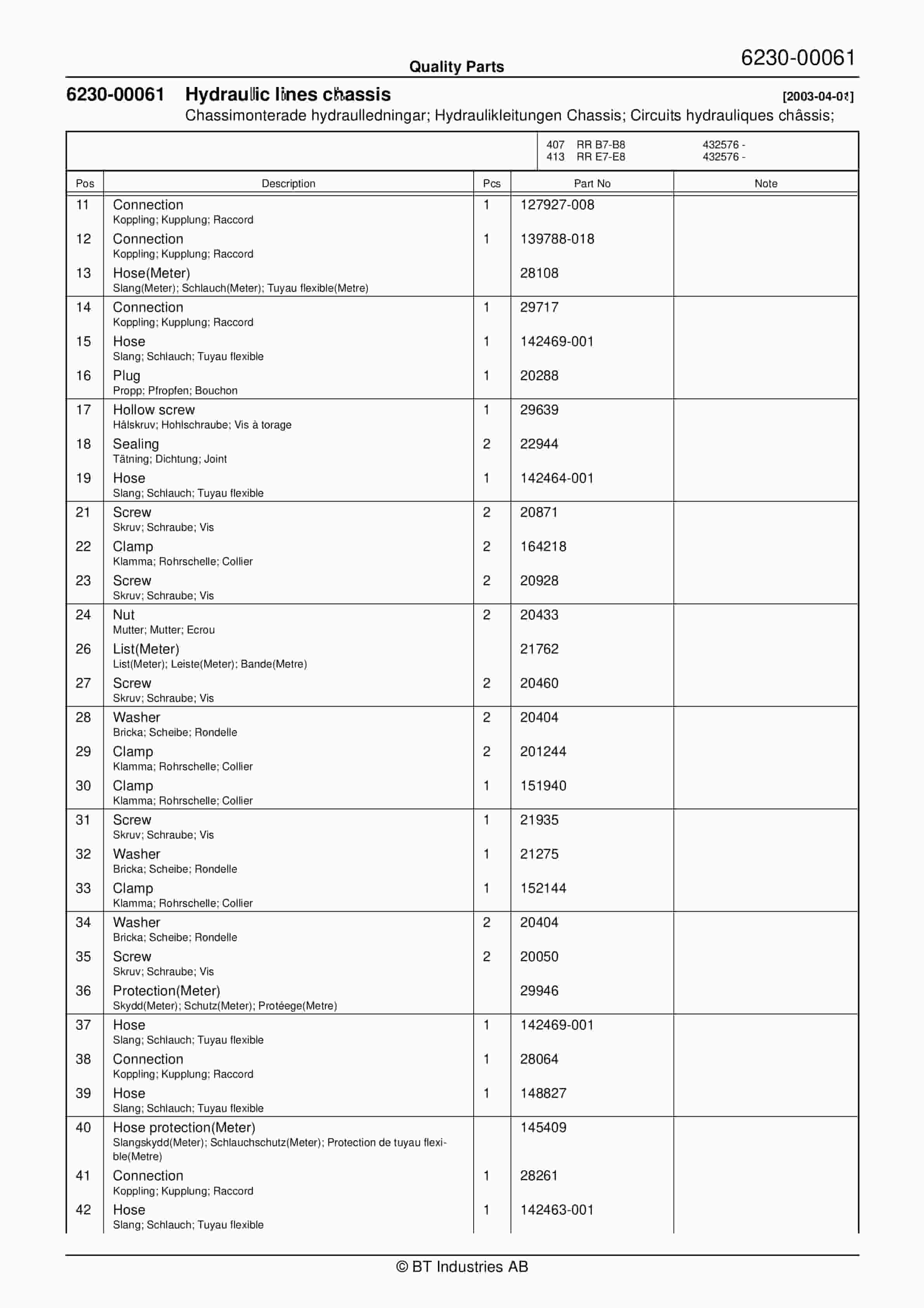BT 602-TT, 608-TT, 609-TT, 610-TT, 612-TT, 620-TT (AC) Quality Parts 253711