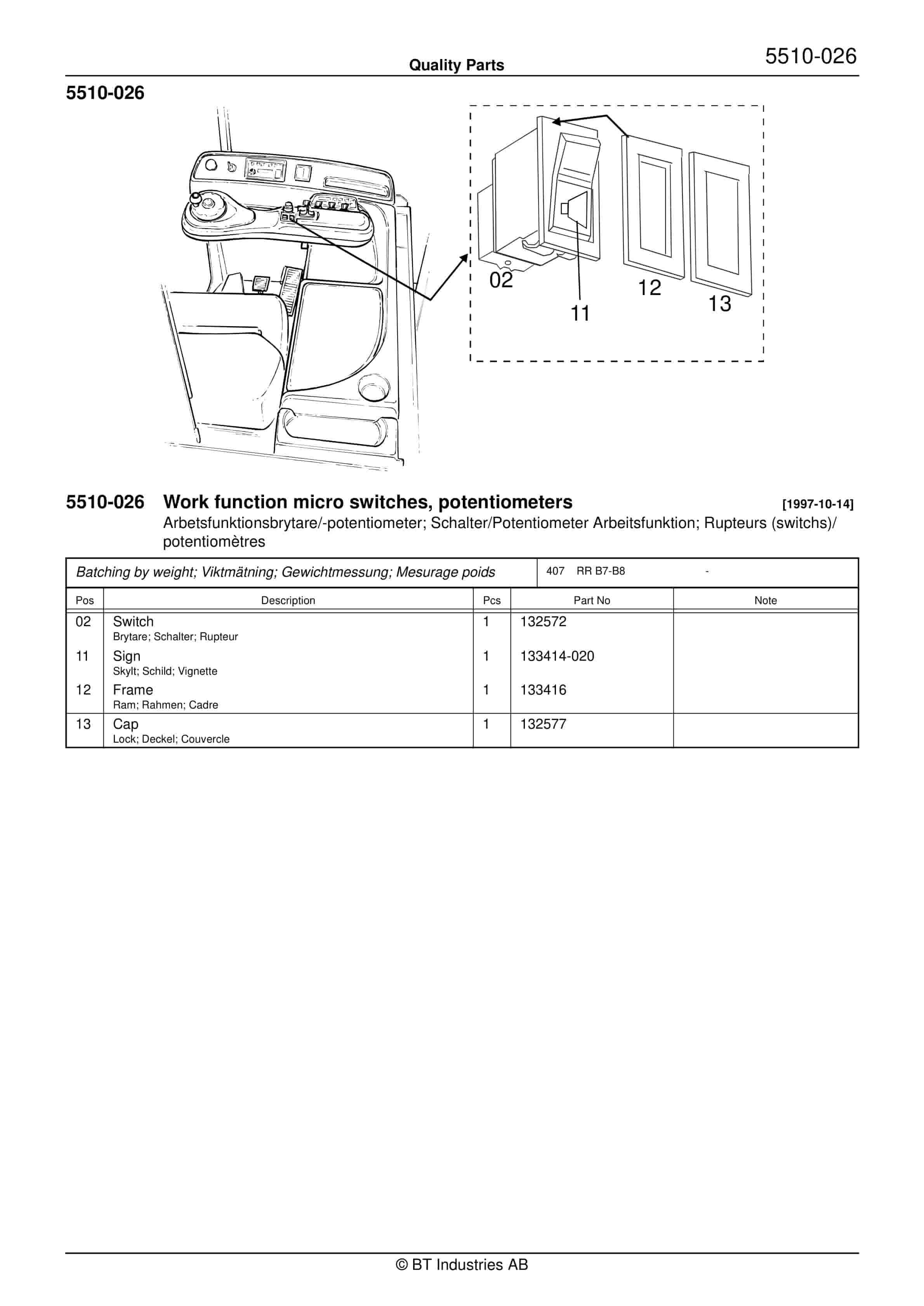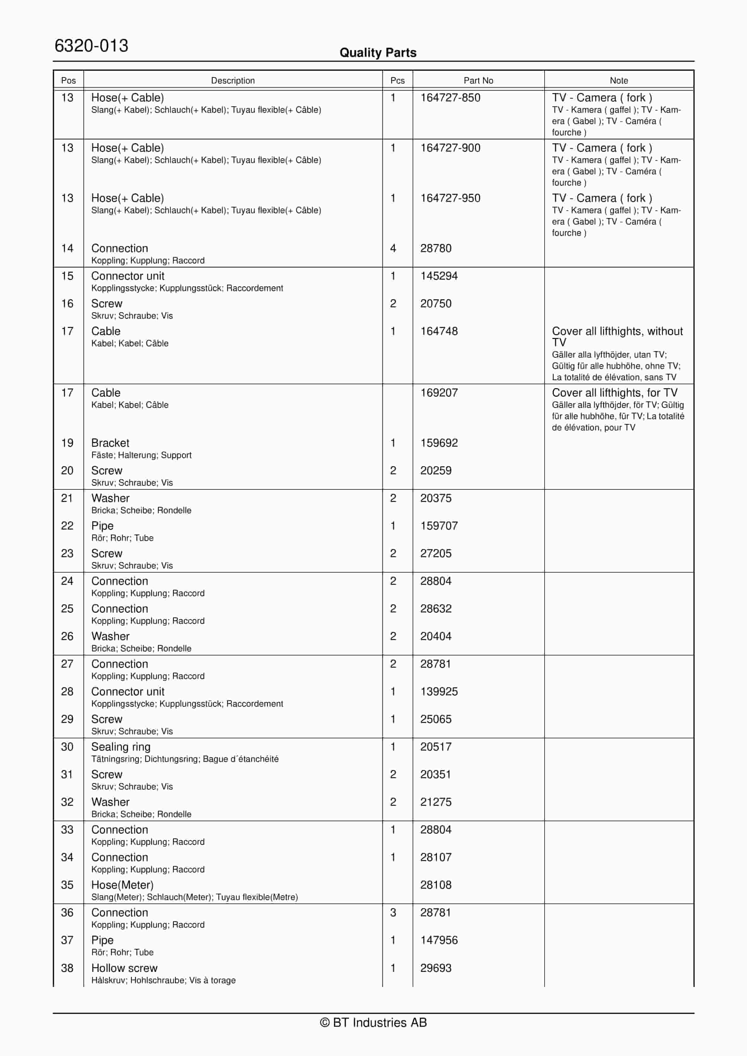 BT 602-TT, 608-TT, 609-TT, 610-TT, 612-TT, 620-TT (AC) Quality Parts 253711