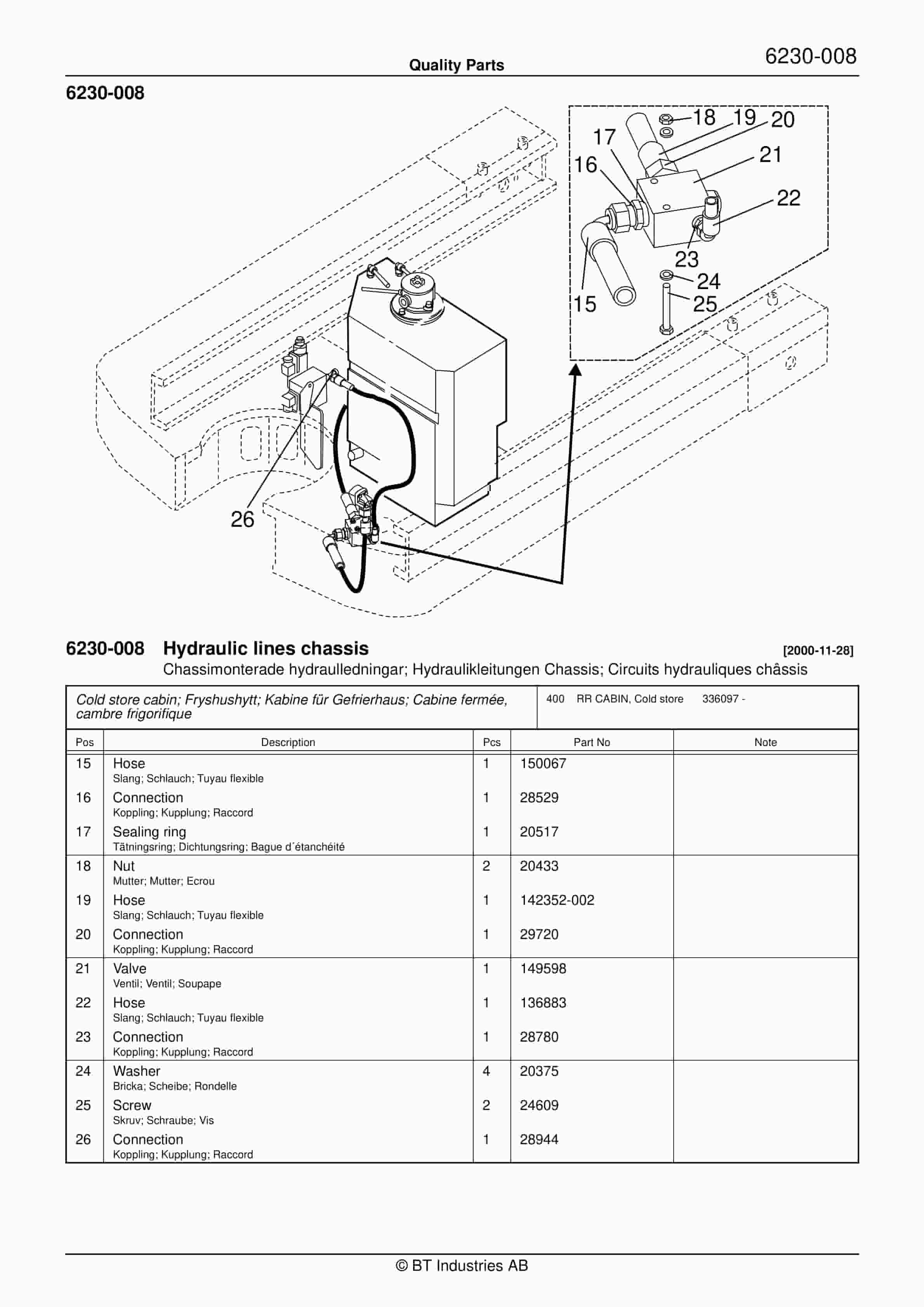 BT BTL20EW, BTL20EWO, BTL30EW, BTL30EWO, L20BR, L20BRO, L30BR, L30BRO Quality Parts 177967
