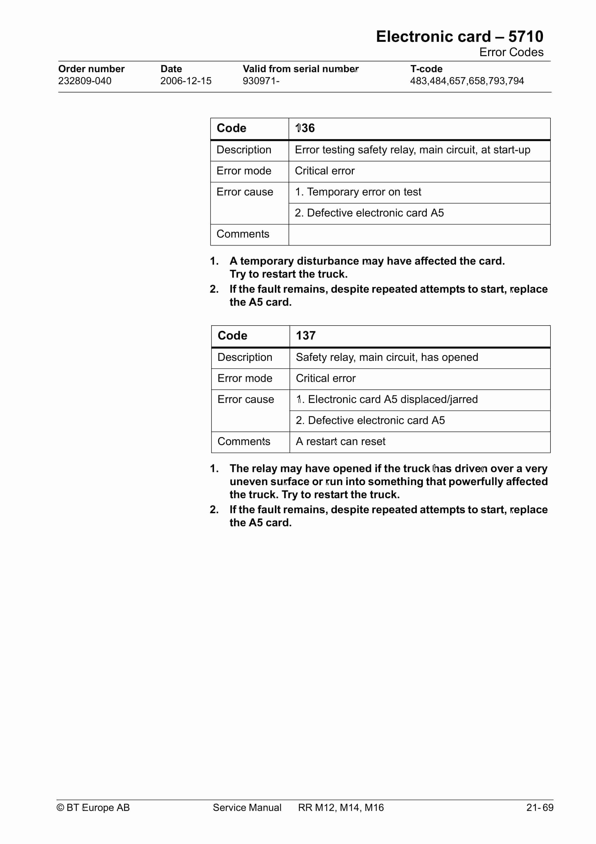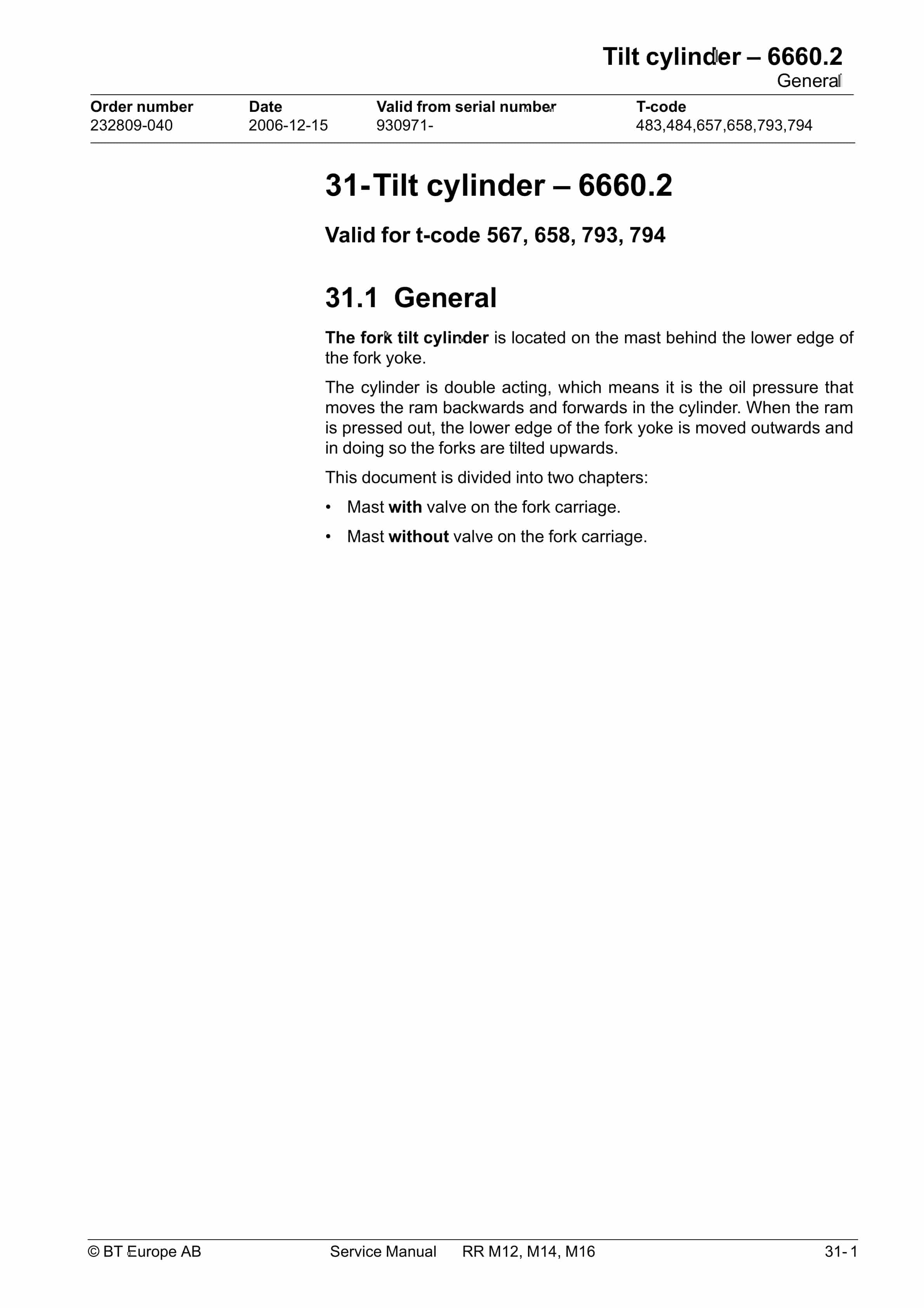 BT RR M12, RR M14, RR M16 Service Manual 232809-040