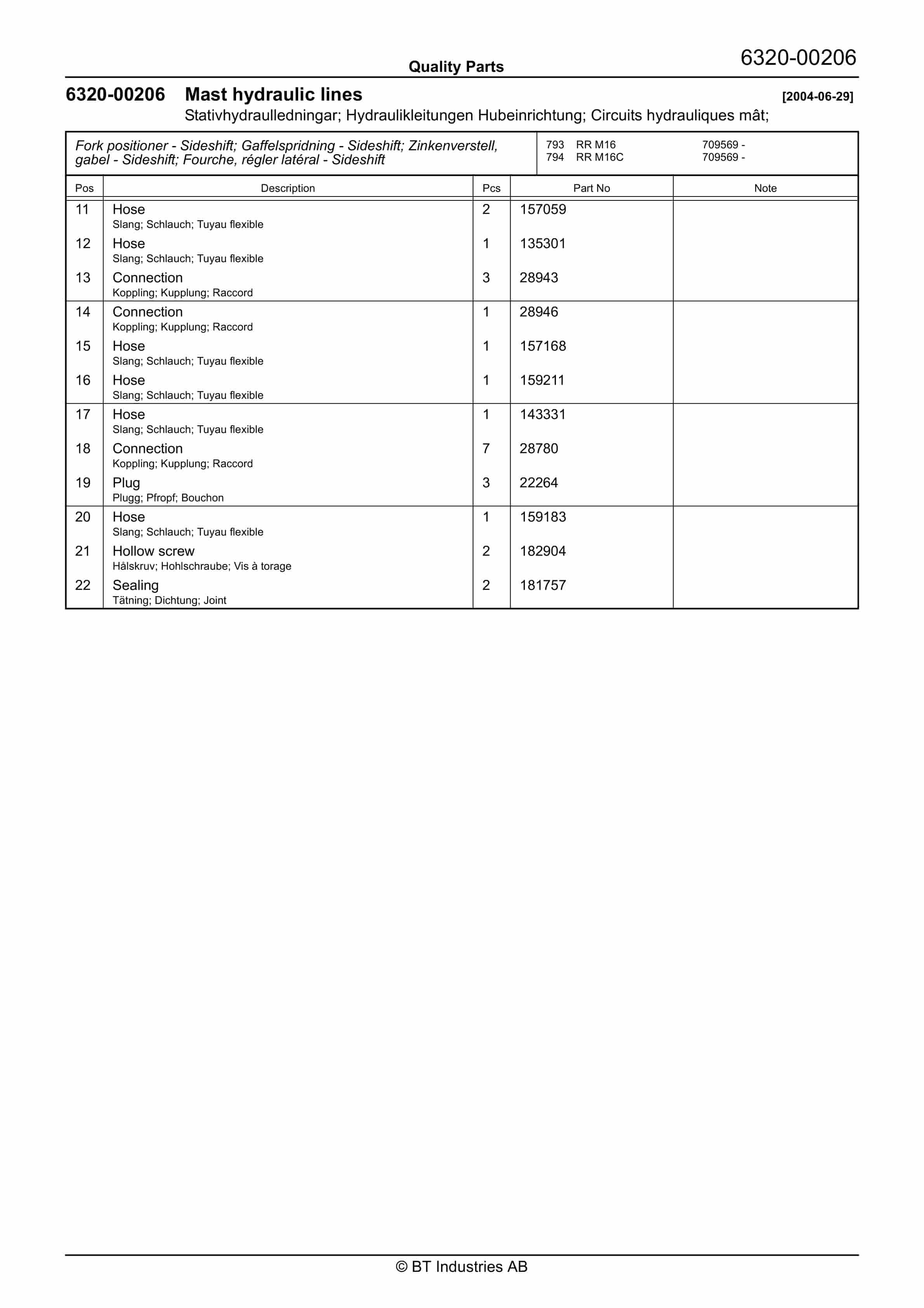 BT 602-TT, 608-TT, 609-TT, 610-TT, 612-TT, 620-TT (AC) Quality Parts 253711
