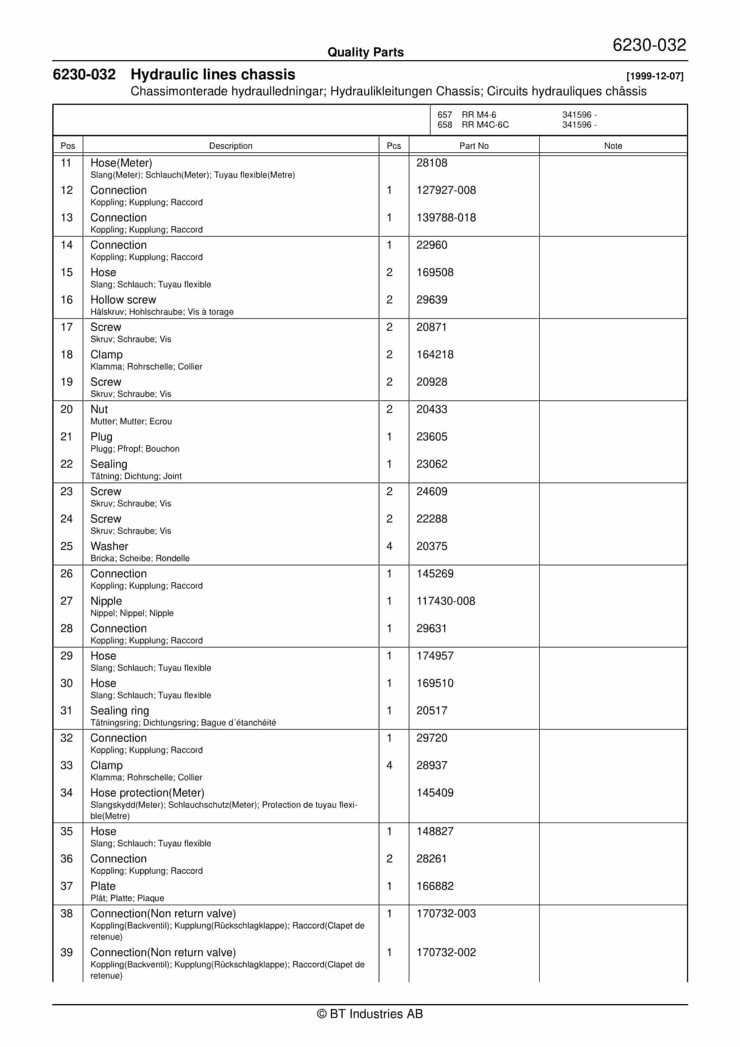 BT 602-TT, 608-TT, 609-TT, 610-TT, 612-TT, 620-TT Quality Parts 241857