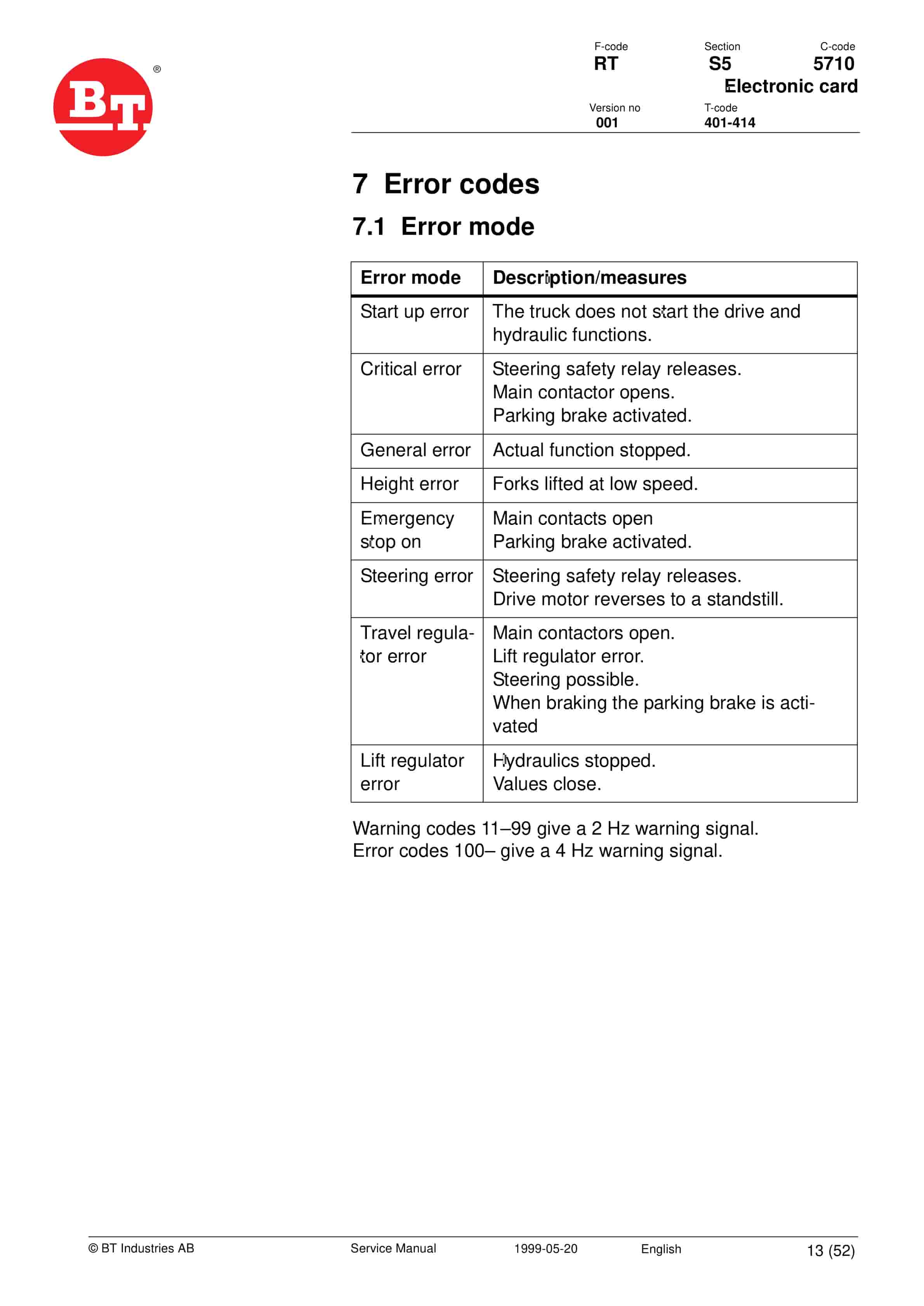 BT RR N1-N3, RR B1-B8, RR E1-E8 Service Manual