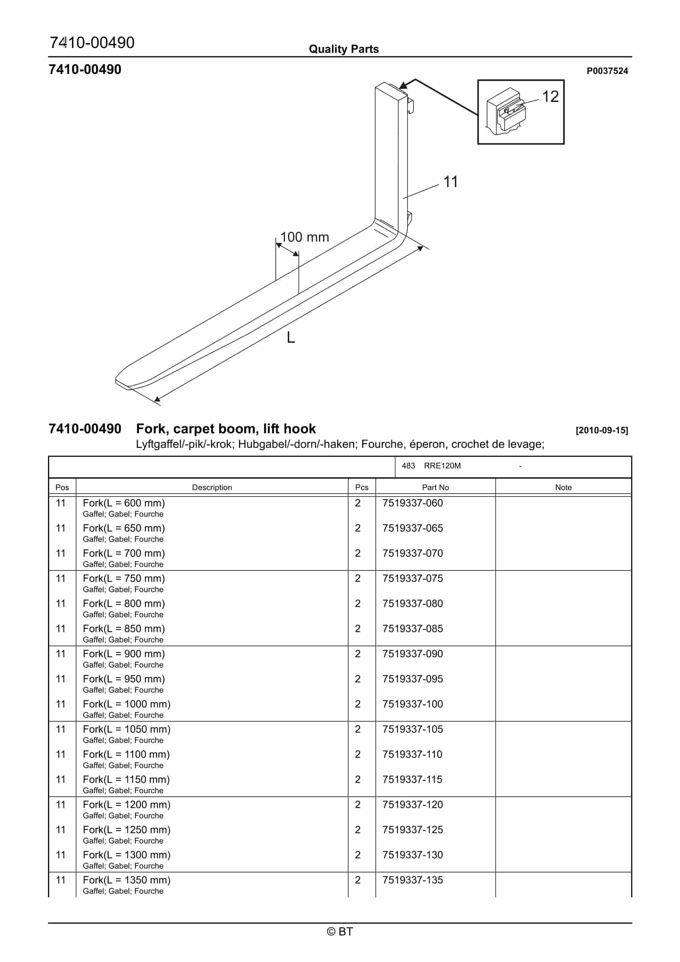 BT RRE120M Quality Parts 7522204