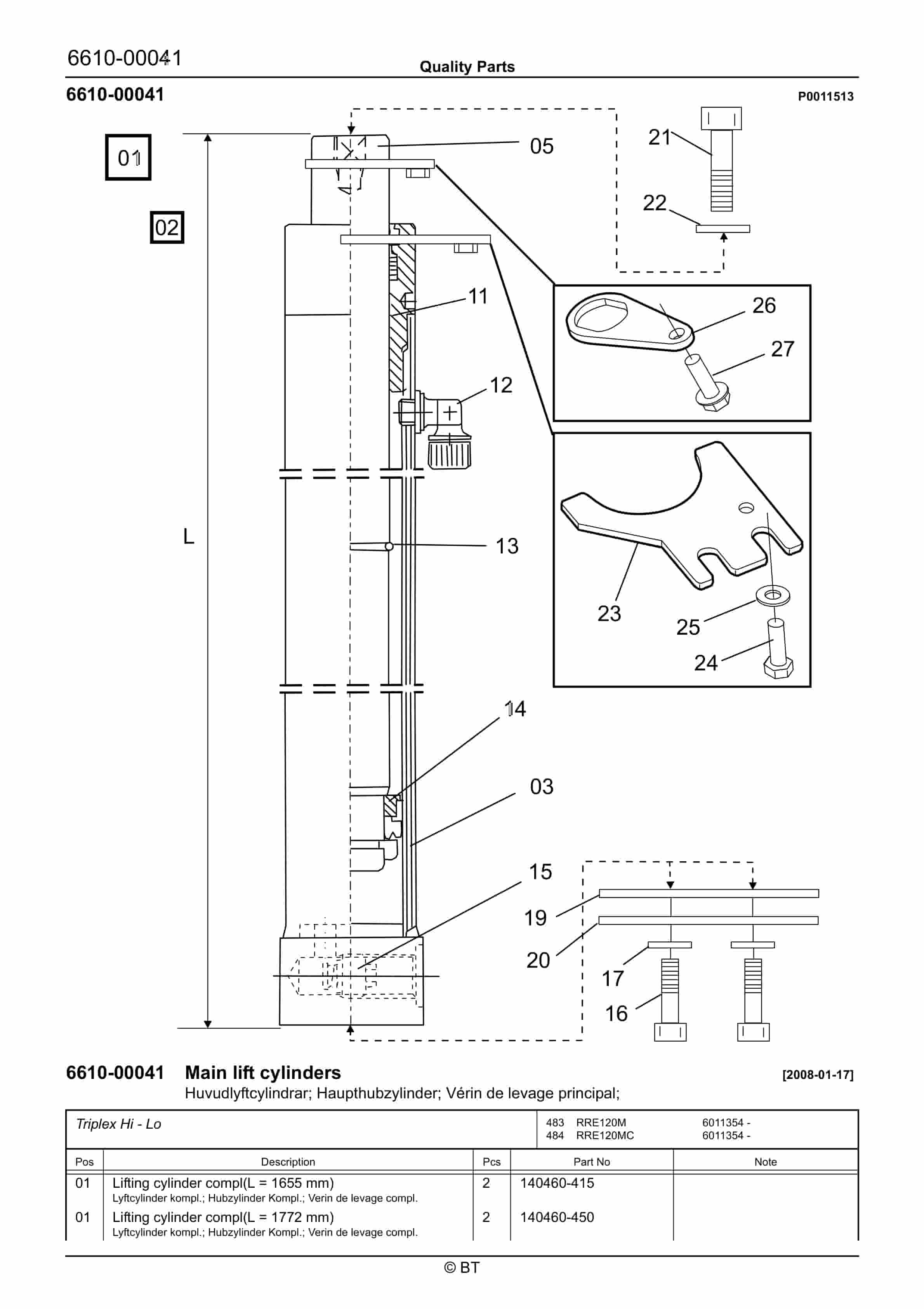 BT BTL20EW, BTL20EWO, BTL30EW, BTL30EWO, L20BR, L20BRO, L30BR, L30BRO Quality Parts 177967