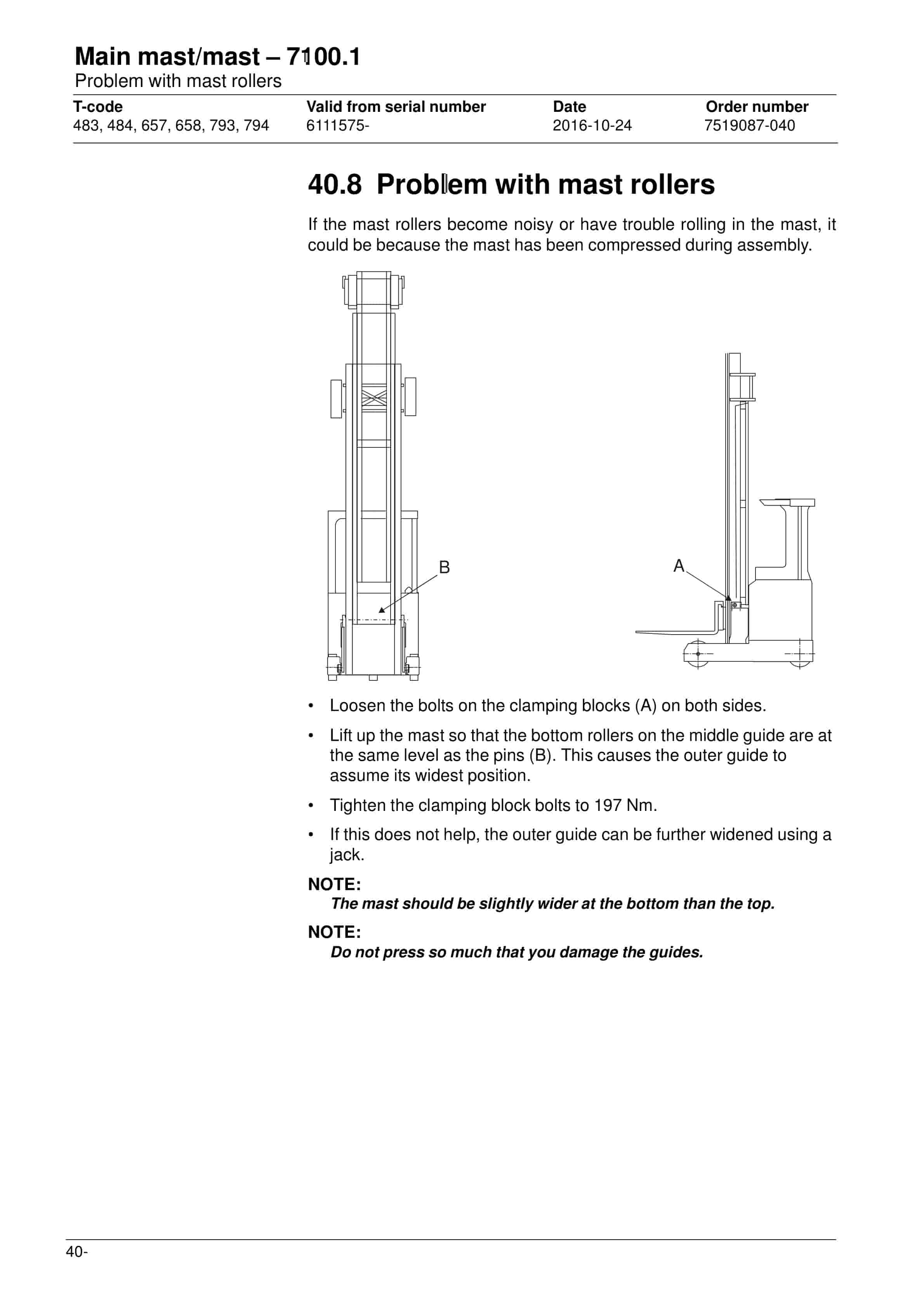 - 40.8. Problem with mast rollers
