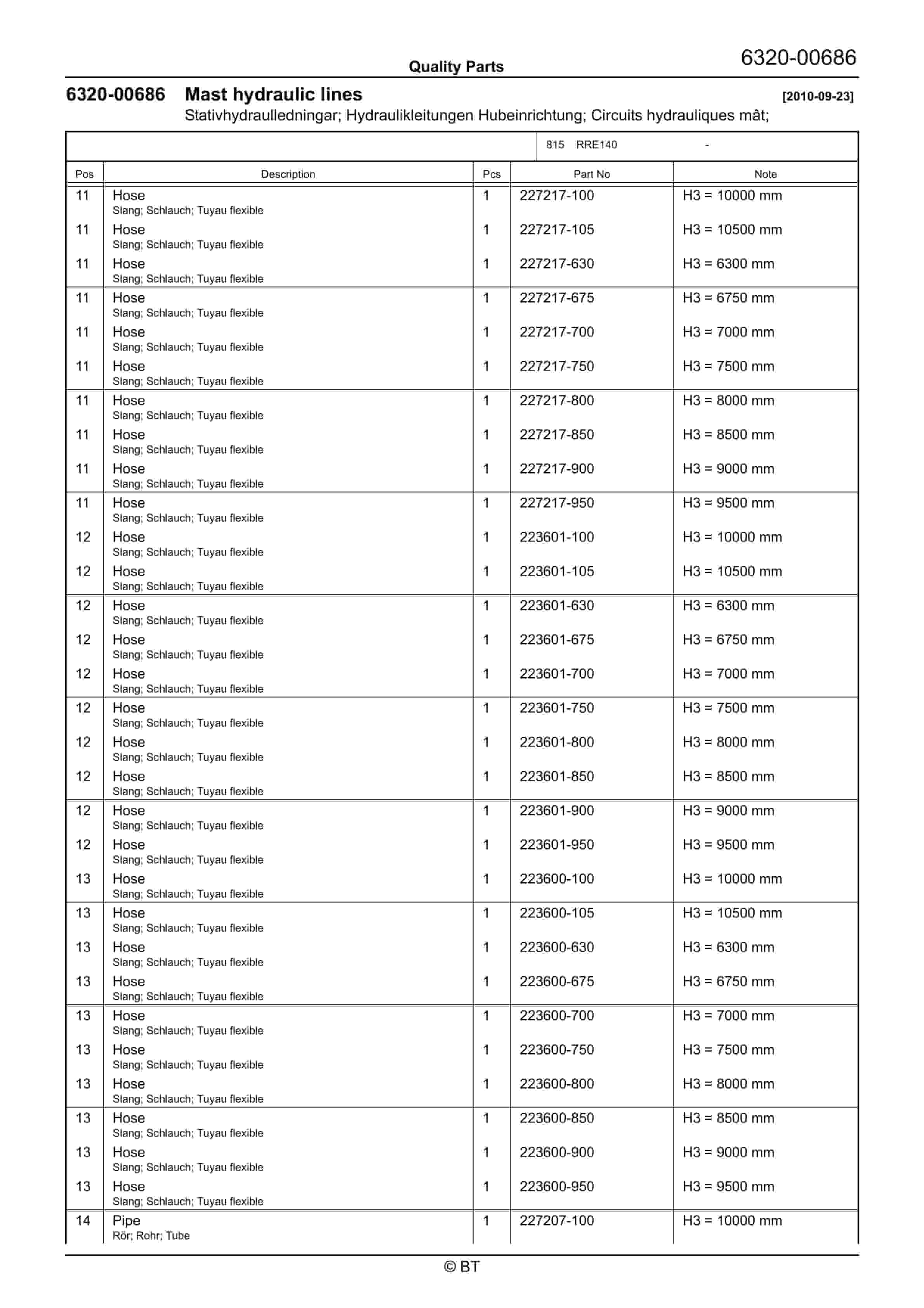 BT 602-TT, 608-TT, 609-TT, 610-TT, 612-TT, 620-TT (AC) Quality Parts 253711