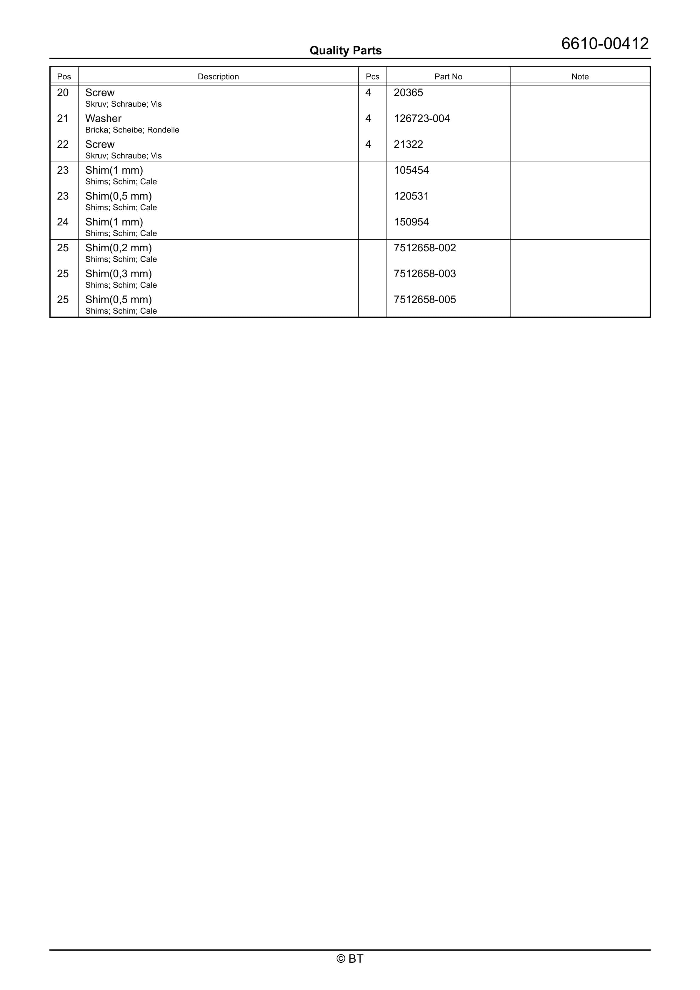 BT BTL20EW, BTL20EWO, BTL30EW, BTL30EWO, L20BR, L20BRO, L30BR, L30BRO Quality Parts 177967