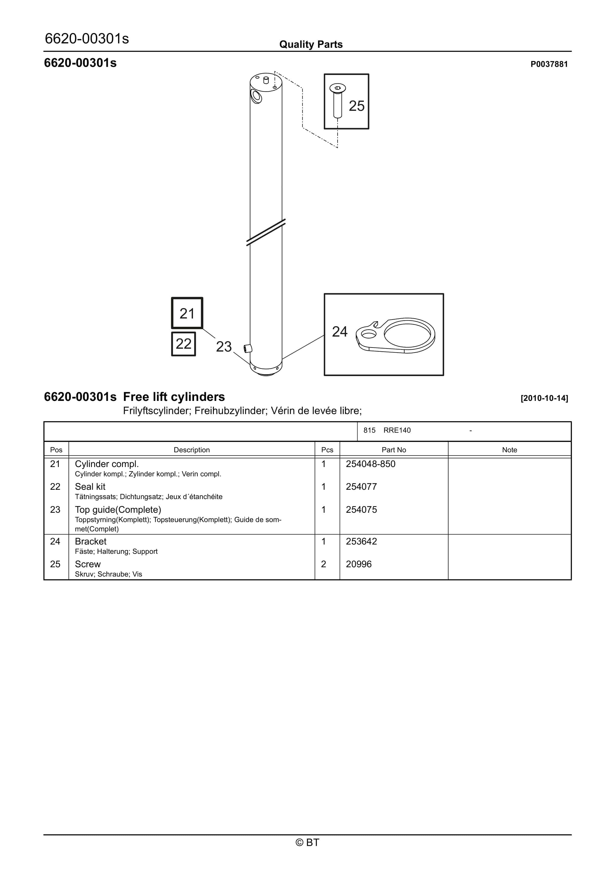 BT BTL20EW, BTL20EWO, BTL30EW, BTL30EWO, L20BR, L20BRO, L30BR, L30BRO Quality Parts 177967