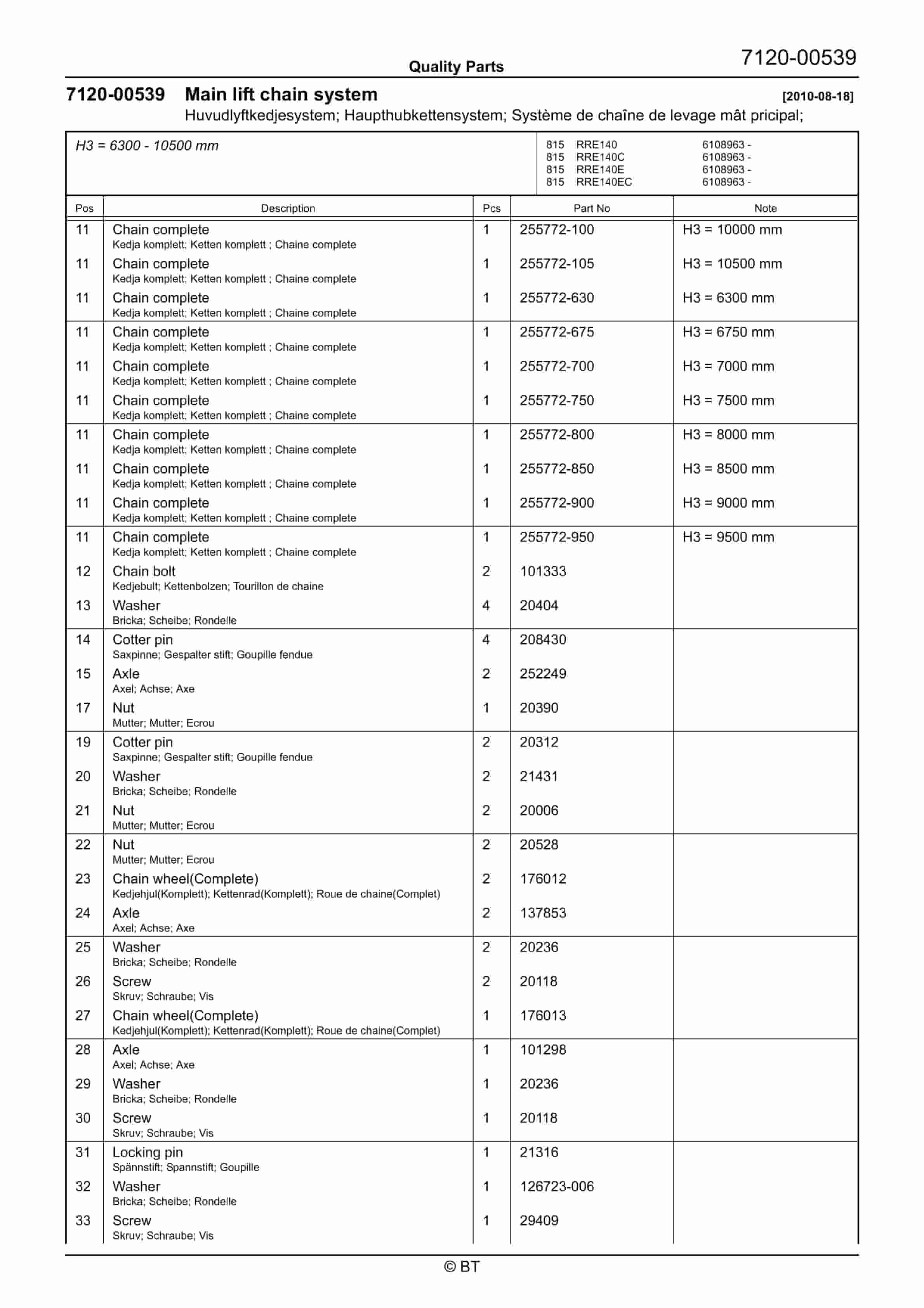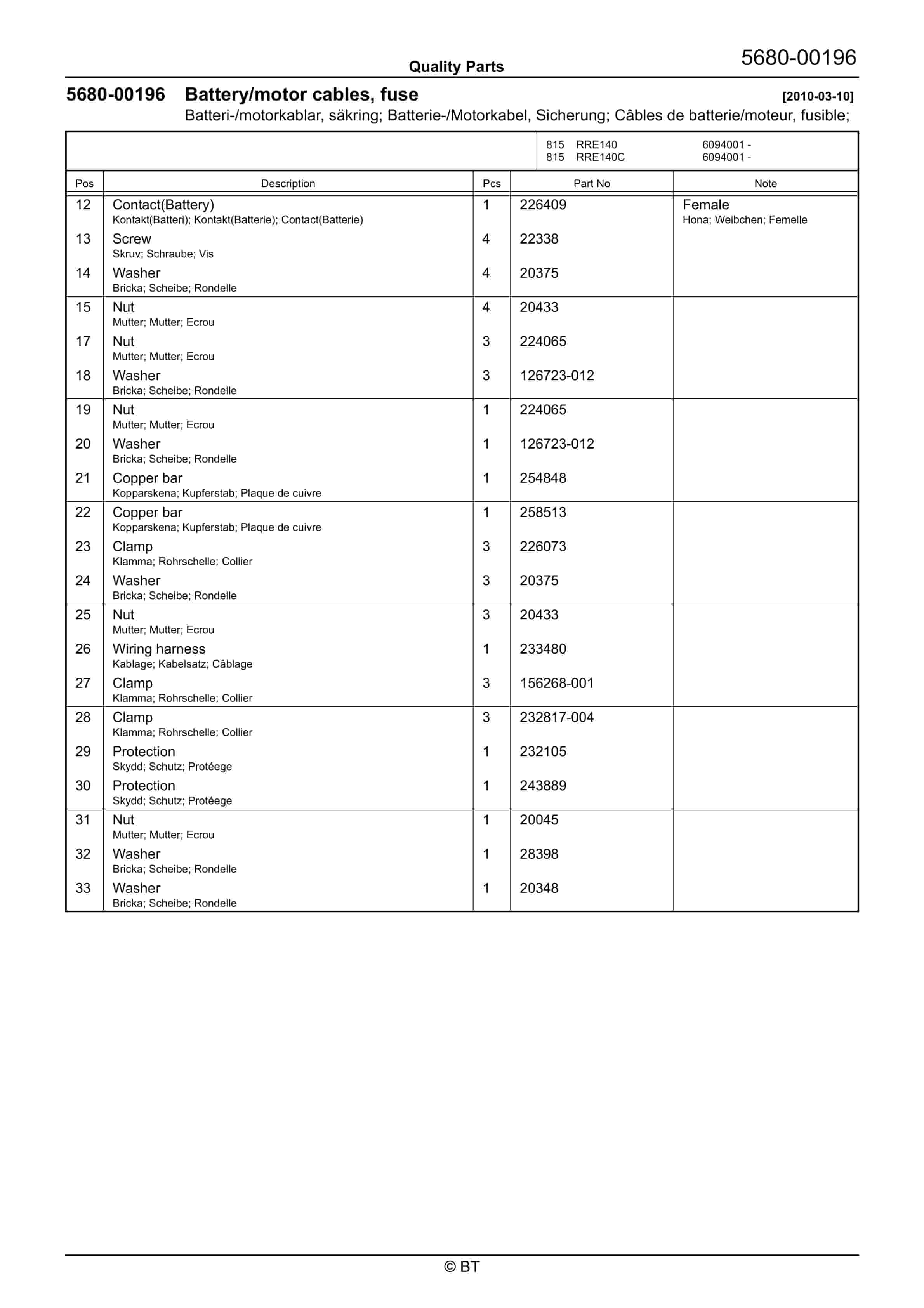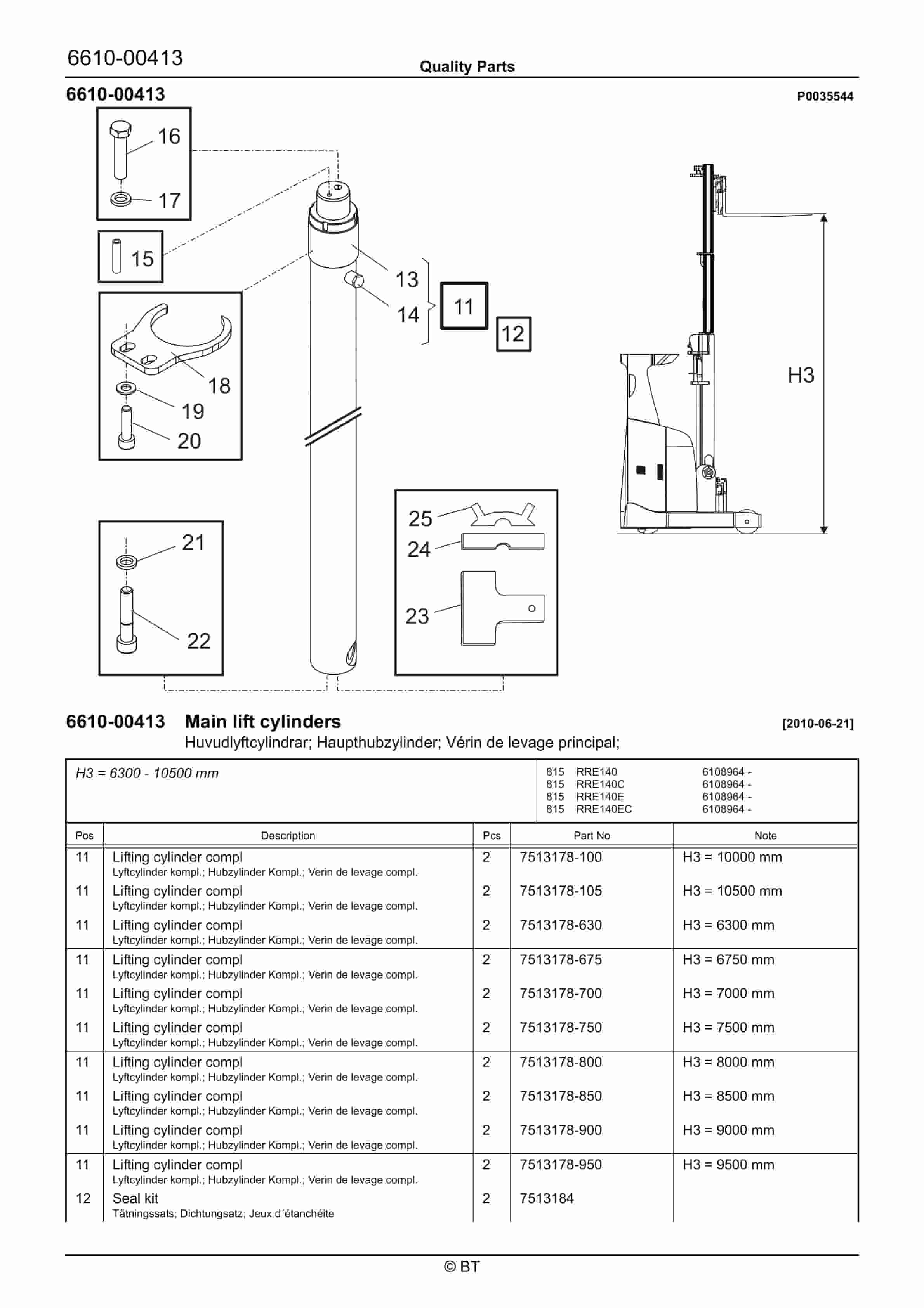 BT 602-TT, 608-TT, 609-TT, 610-TT, 612-TT, 620-TT (AC) Quality Parts 253711
