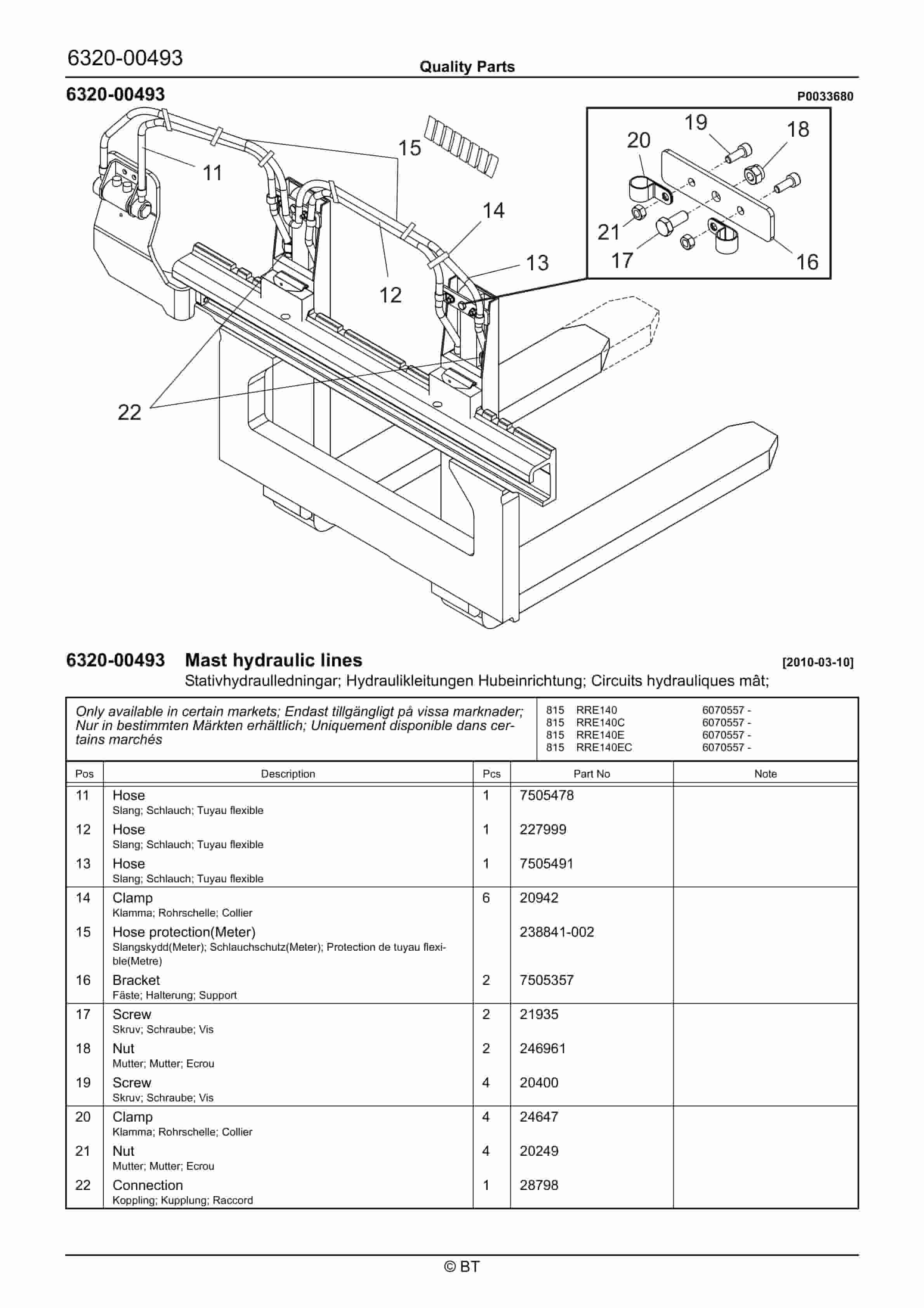 BT RRE140, RRE140C, RRE140E, RRE140EC Quality Parts 7523027