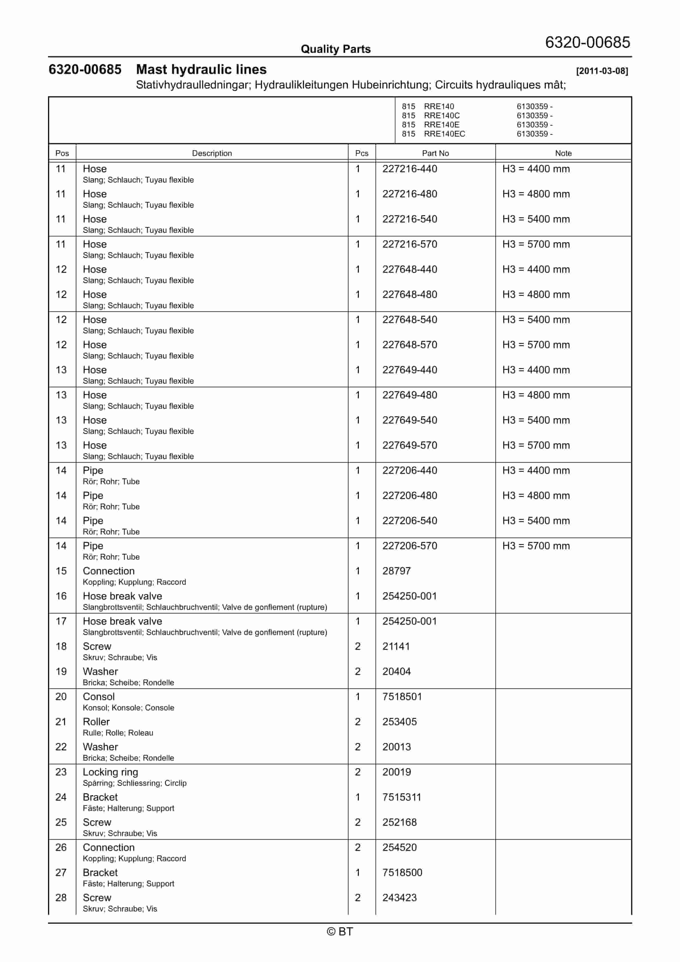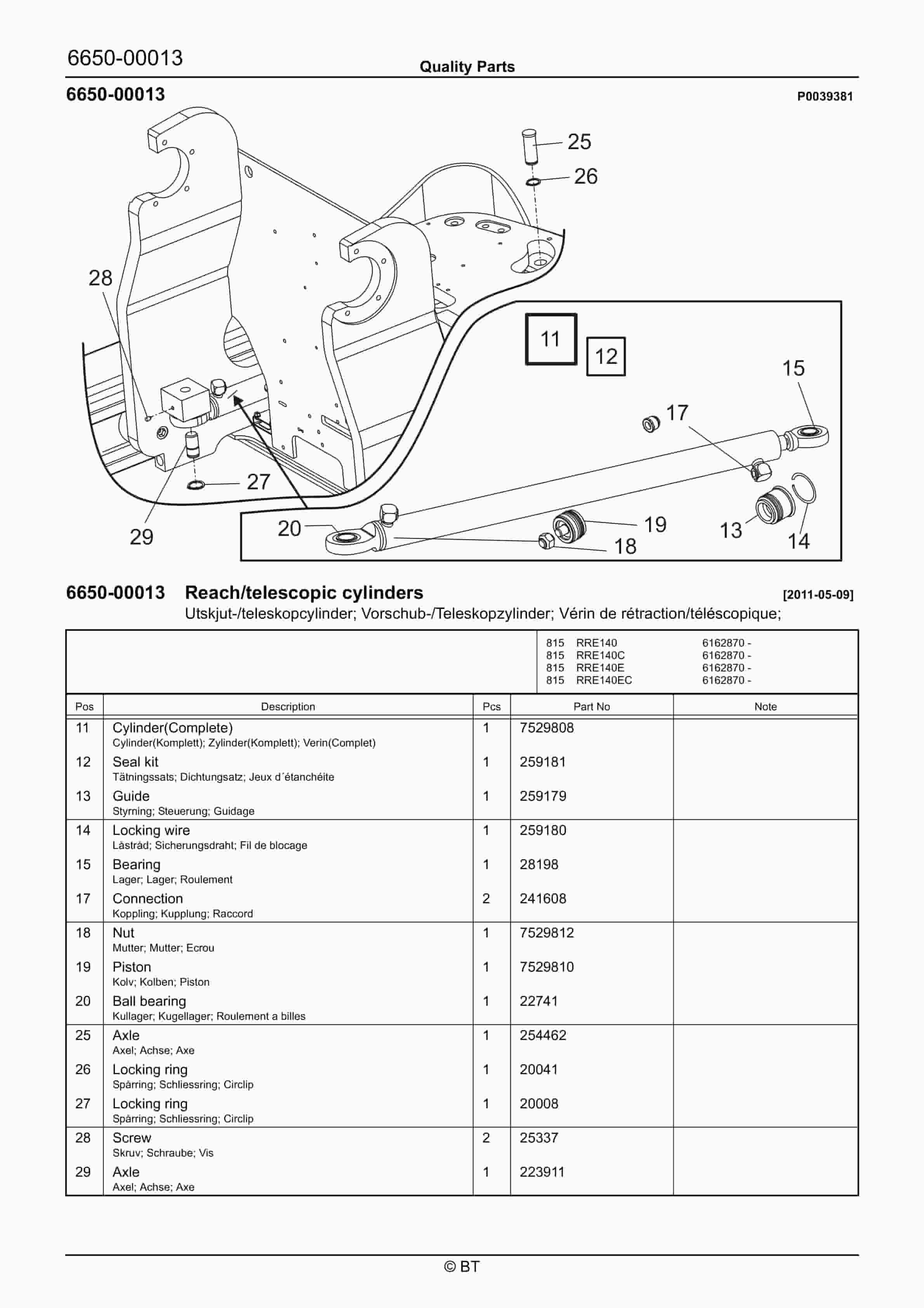 BT RRE140, RRE140C, RRE140E, RRE140EC Quality Parts 7532135