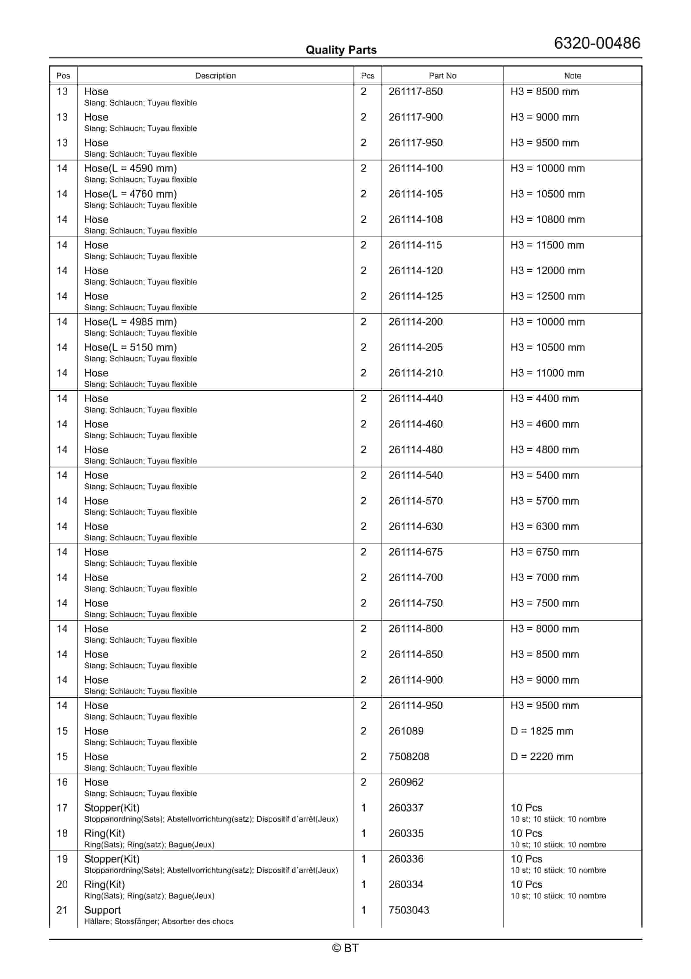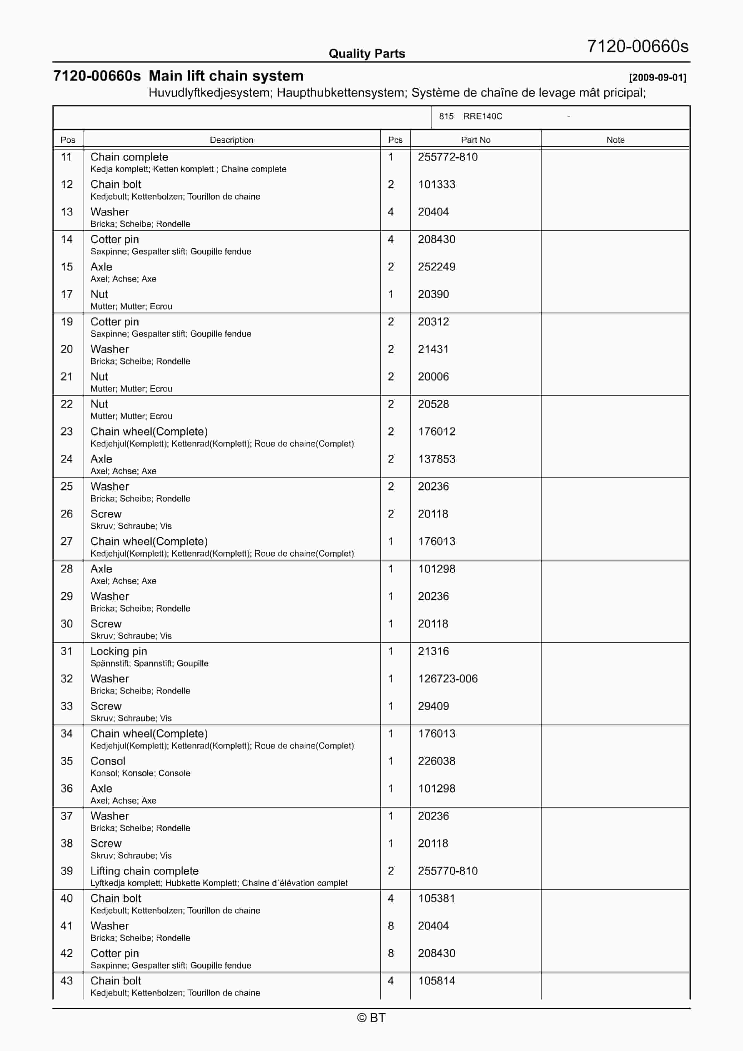 BT CARGO C3E 100R, C3E 130R, C3E 150R Spare Parts Catalog 0350190R1