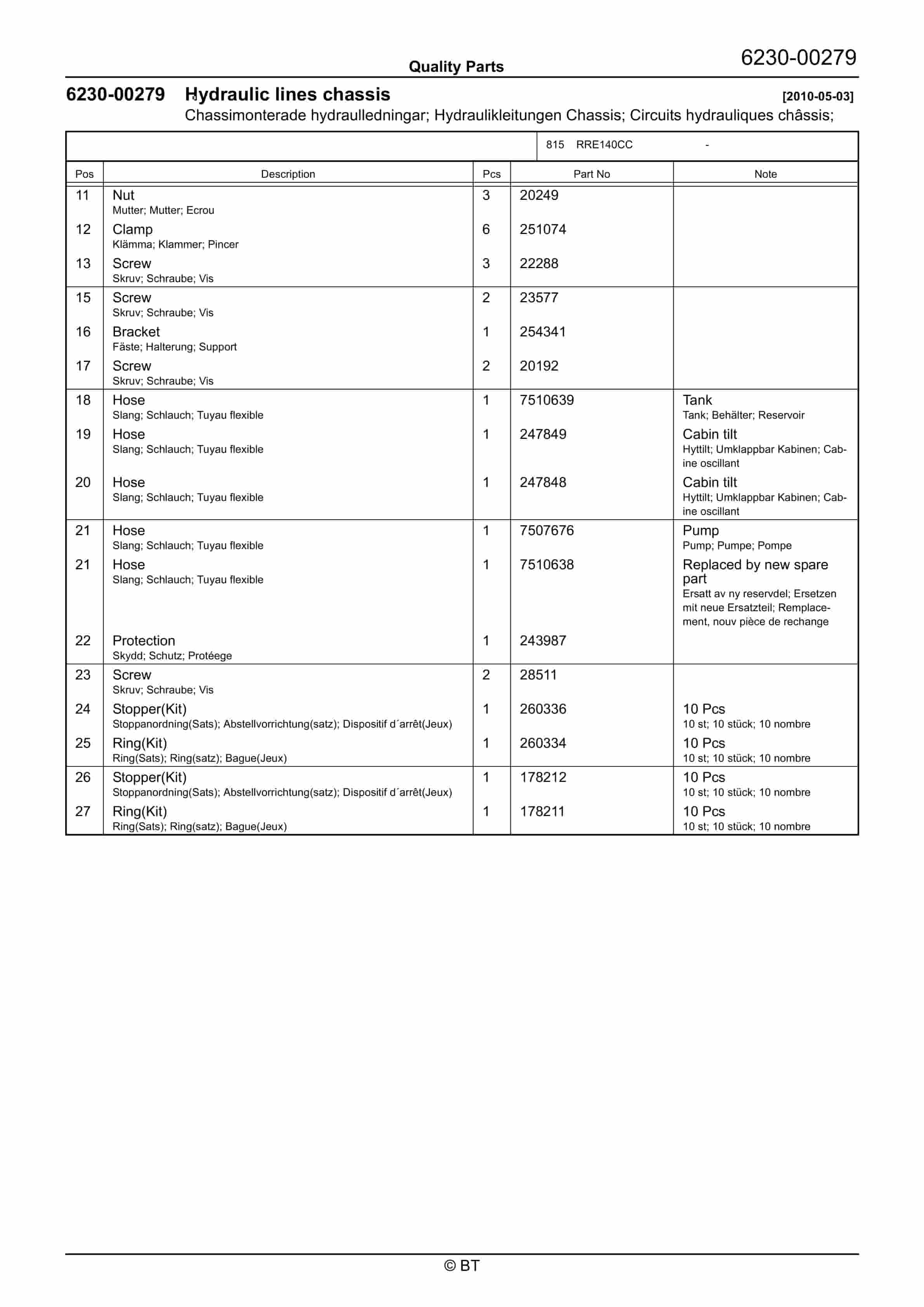 BT 602-TT, 608-TT, 609-TT, 610-TT, 612-TT, 620-TT Quality Parts 7501655