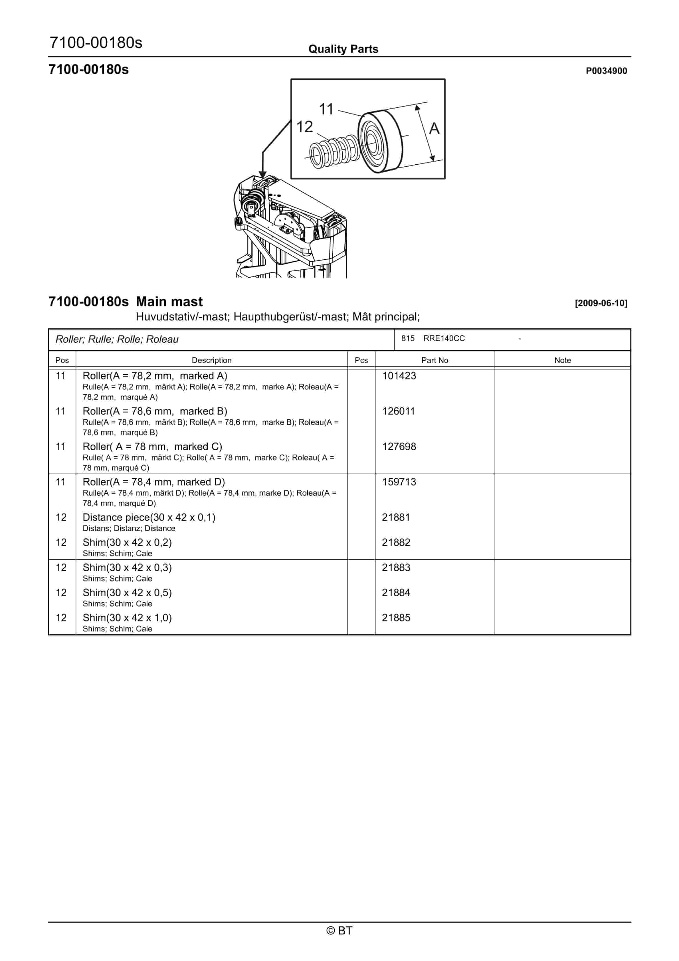 BT 604-TT, 609-TT, 610-TT, 612-TT, 602-TT, 608-TT Quality Parts 180727