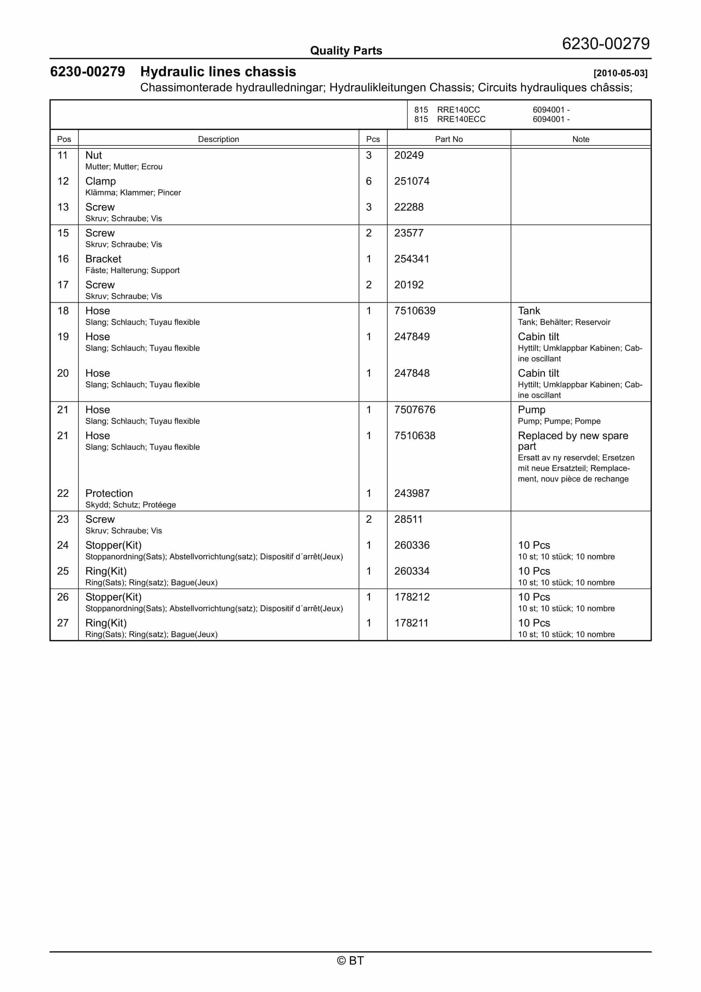 BT 602-TT, 608-TT, 609-TT, 610-TT, 612-TT, 620-TT (AC) Quality Parts 253711
