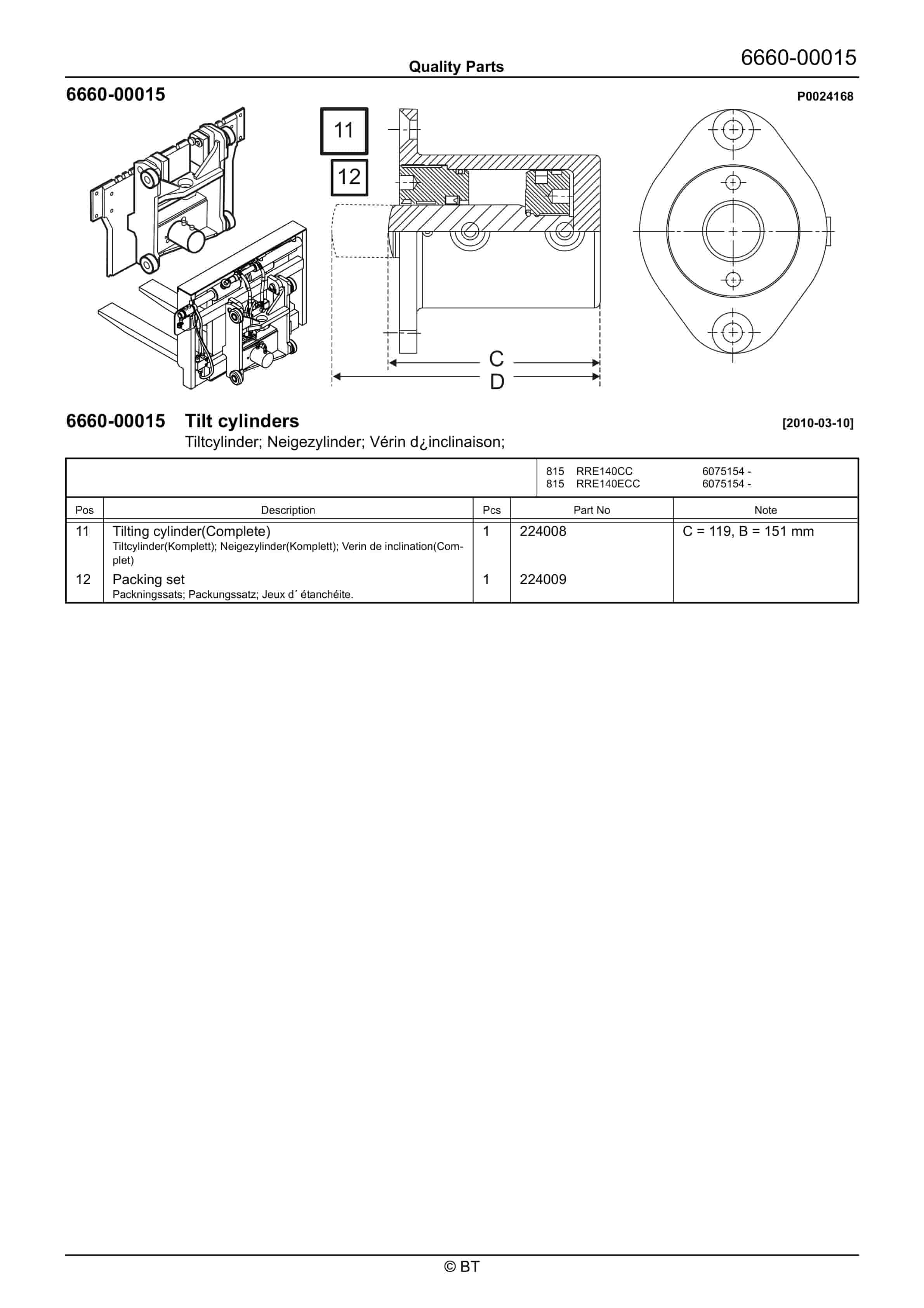 BT CARGO C3E 100R, C3E 130R, C3E 150R Spare Parts Catalog 0350190R1