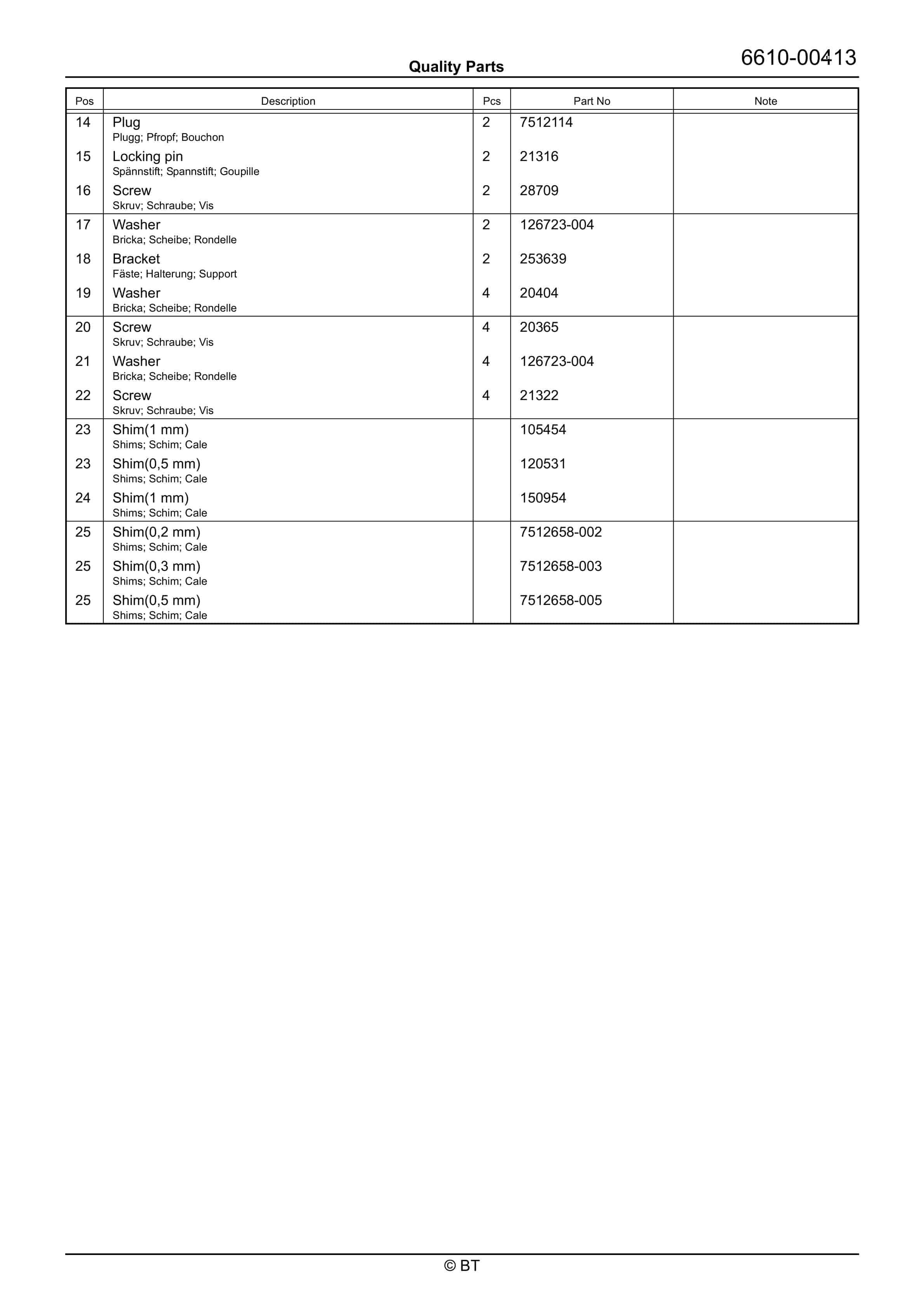 BT BTL20EW, BTL20EWO, BTL30EW, BTL30EWO, L20BR, L20BRO, L30BR, L30BRO Quality Parts 177967
